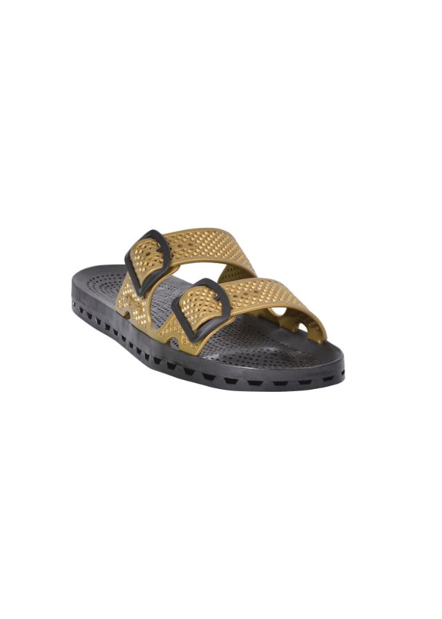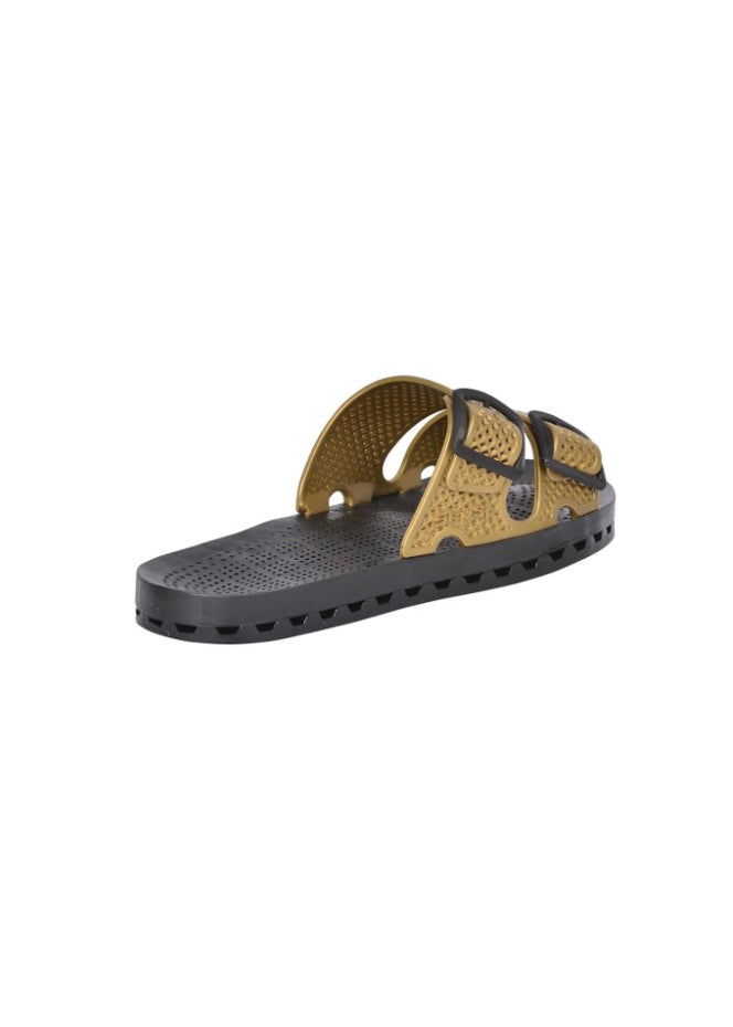 The Urban Gold Double Band Sandal for Children by Sensi Kids, available on Florence Kids, combines elegance and practicality. Made of soft gold-colored rubber, it features adjustable buckles that guarantee a perfect fit. The simple and elegant design, enriched by a soft rubber finish, makes it versatile for any occasion, from casual to more sophisticated clothing. The non-slip sole and perforated tread make the sandal the ideal choice for the summer while the pull-on design makes it easy and practical to wear. It is ideal for wearing with a light dress or a more structured ensemble such as capri pants and a patterned blouse.