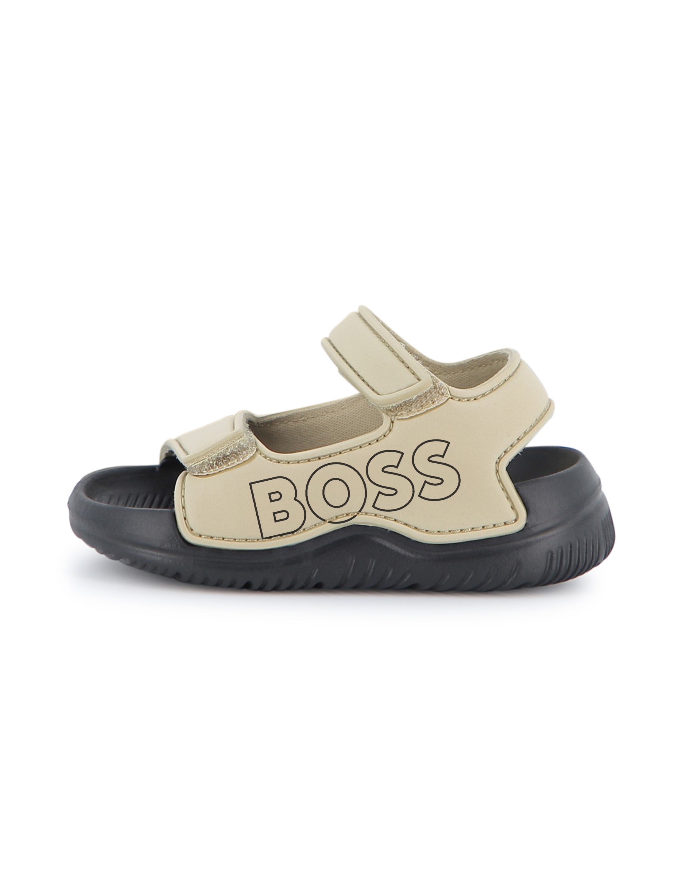 Questi sandali per neonato firmati Boss Kids sono l'accessorio indispensabile per i piccoli esploratori durante la stagione calda. Realizzati in una sofisticata tonalità beige, offrono una struttura robusta ma flessibile, ideale per approcciare i primi passi in spiaggia o a bordo piscina. Il design combina praticità estrema e l'estetica distintiva di Boss, garantendo una calzata sicura e uno stile impeccabile.