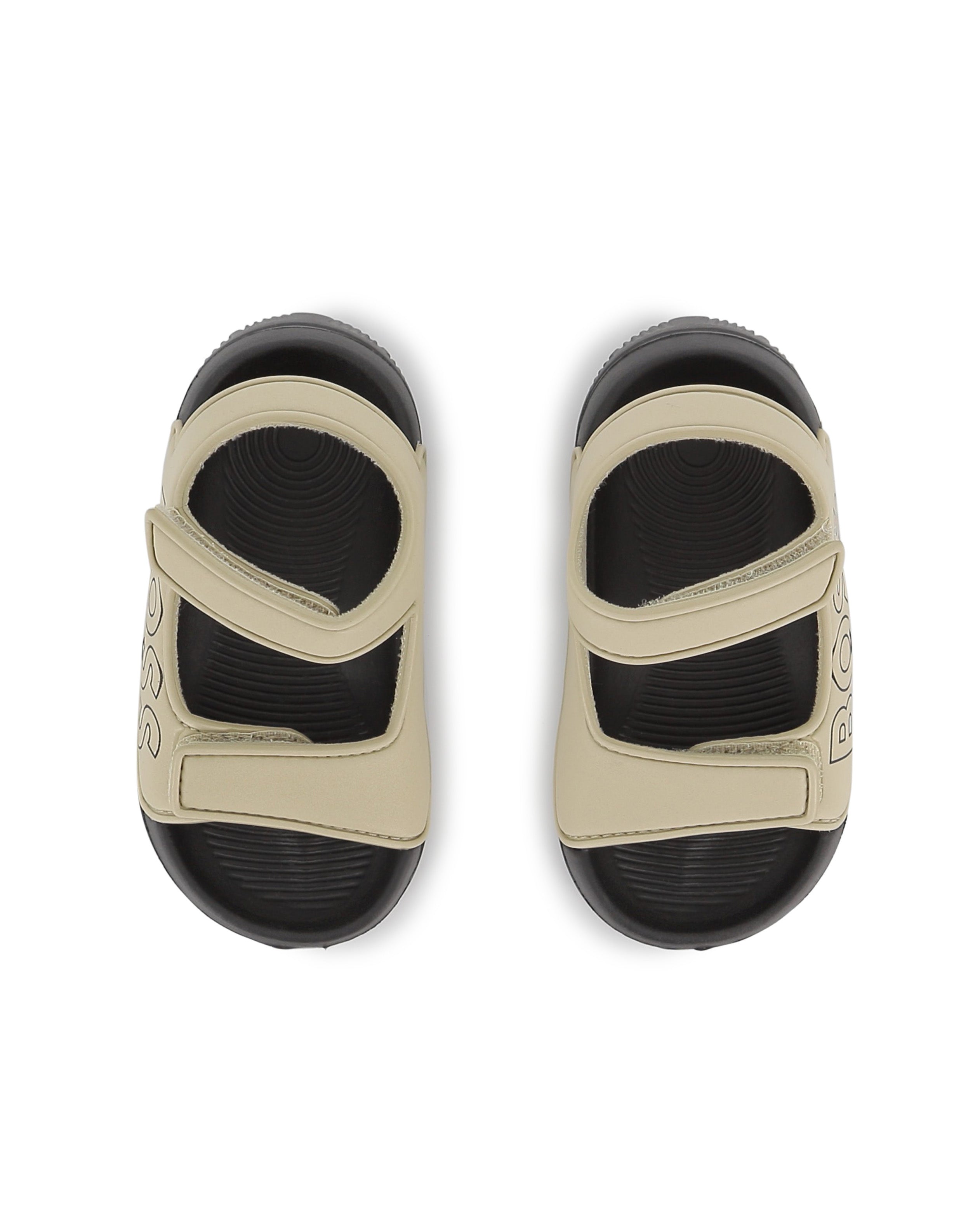 Boss Kids Ciabatta Beige Logata con Chiusura a Strappo per Neonati