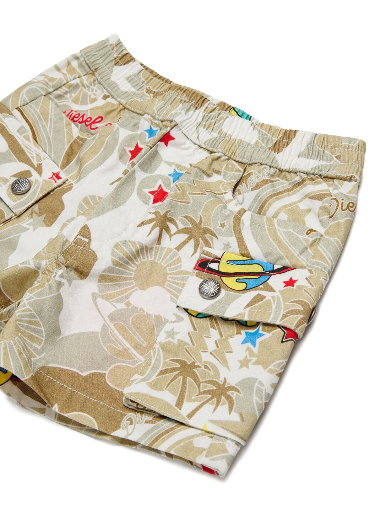 Diesel Kids Short Sabbia con Fantasia e Tasconi per Neonati