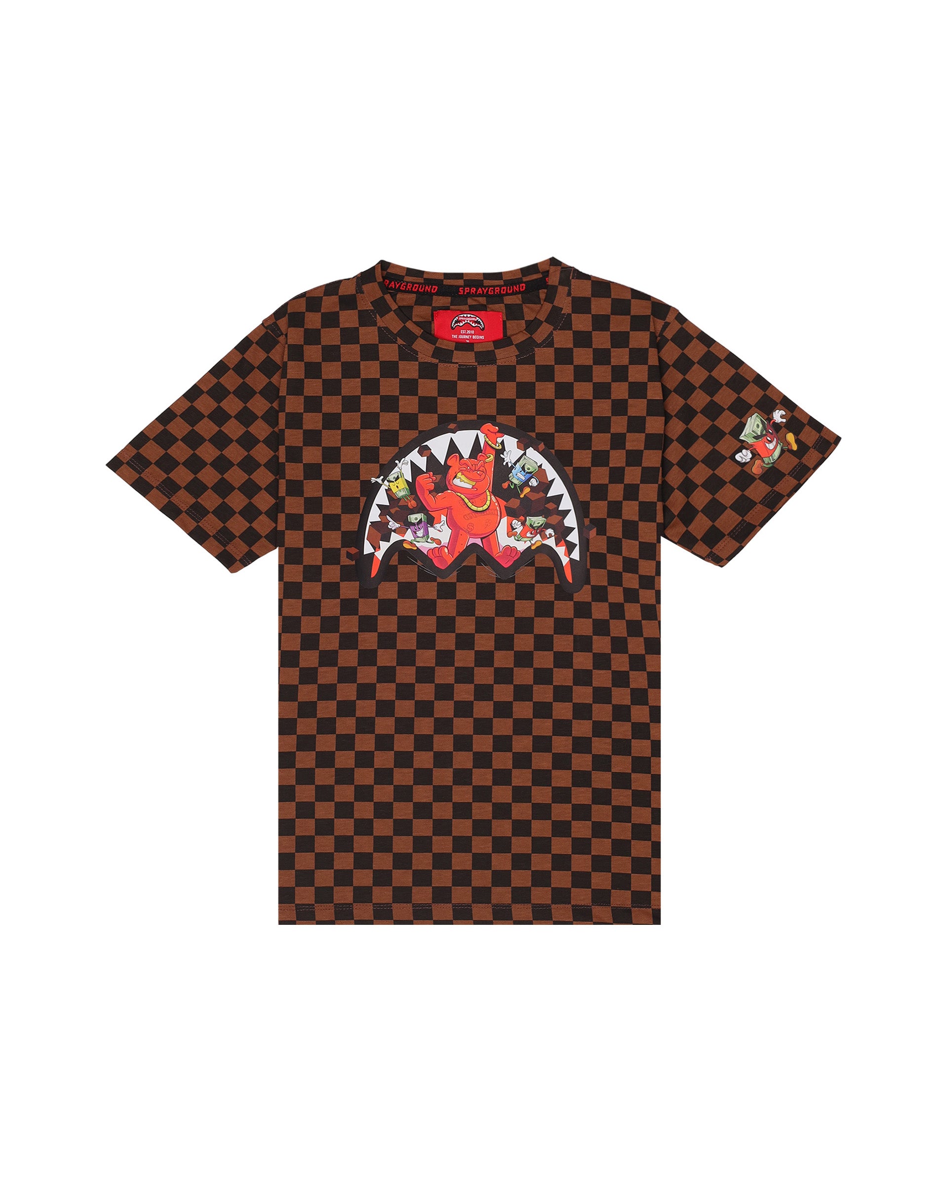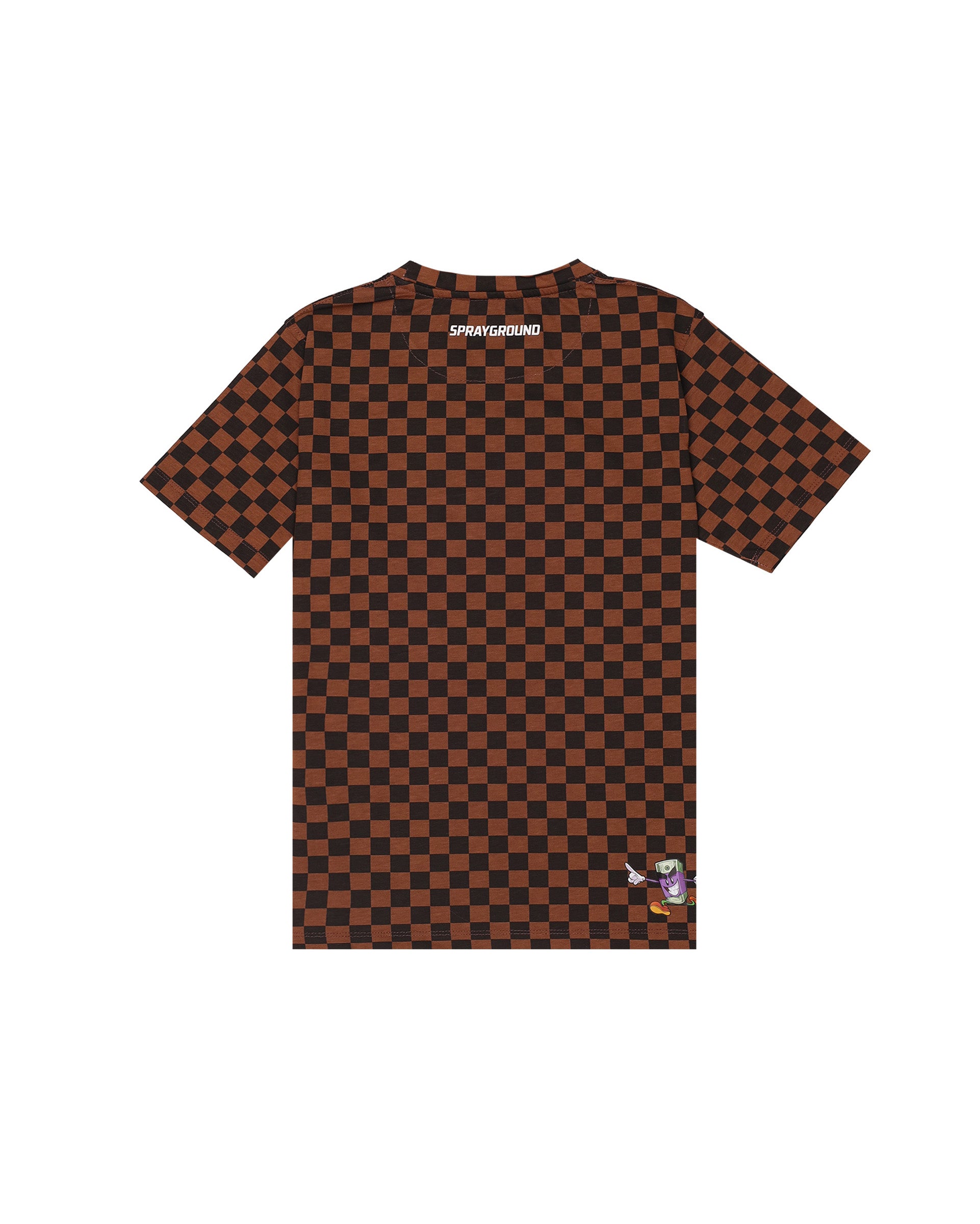 Sprayground Kids T-Shirt Marrone a Scacchi con Stampa Logo per Bambini