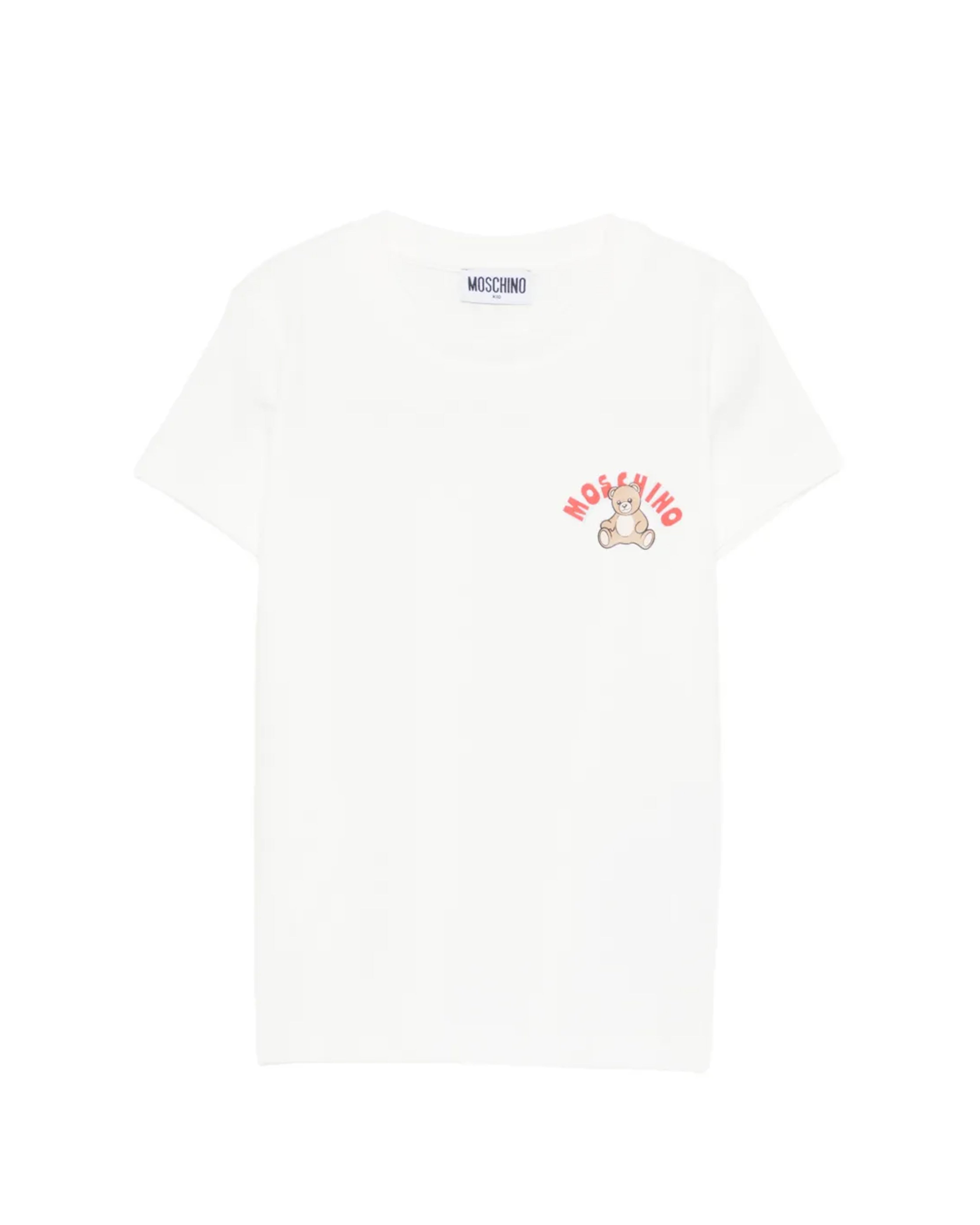 T-shirt Moschino Kids per bambini in bianco, essenziale e iconica, perfetta per la collezione Primavera/Estate 2026. Un capo versatile che unisce comfort e identità distintiva.
