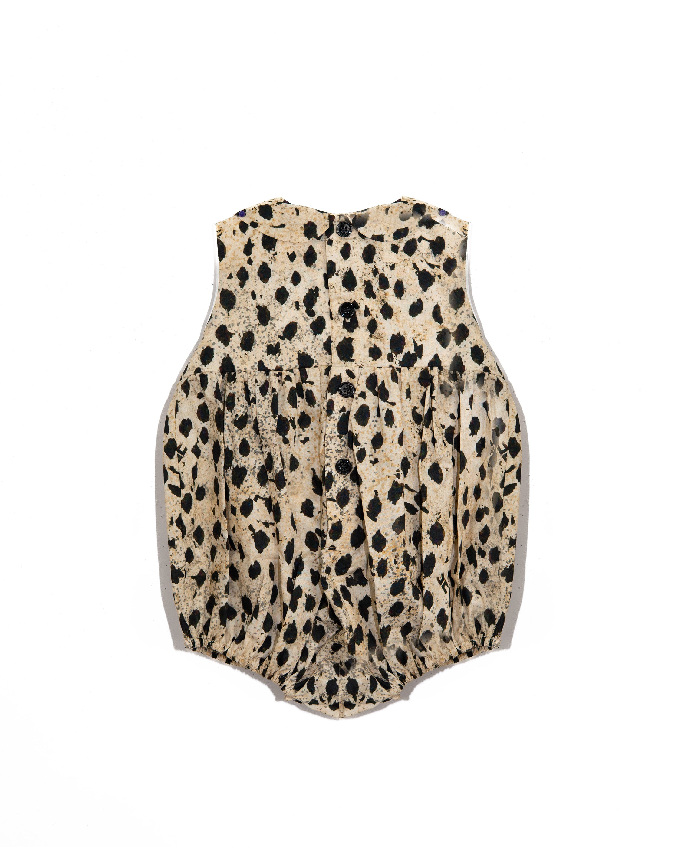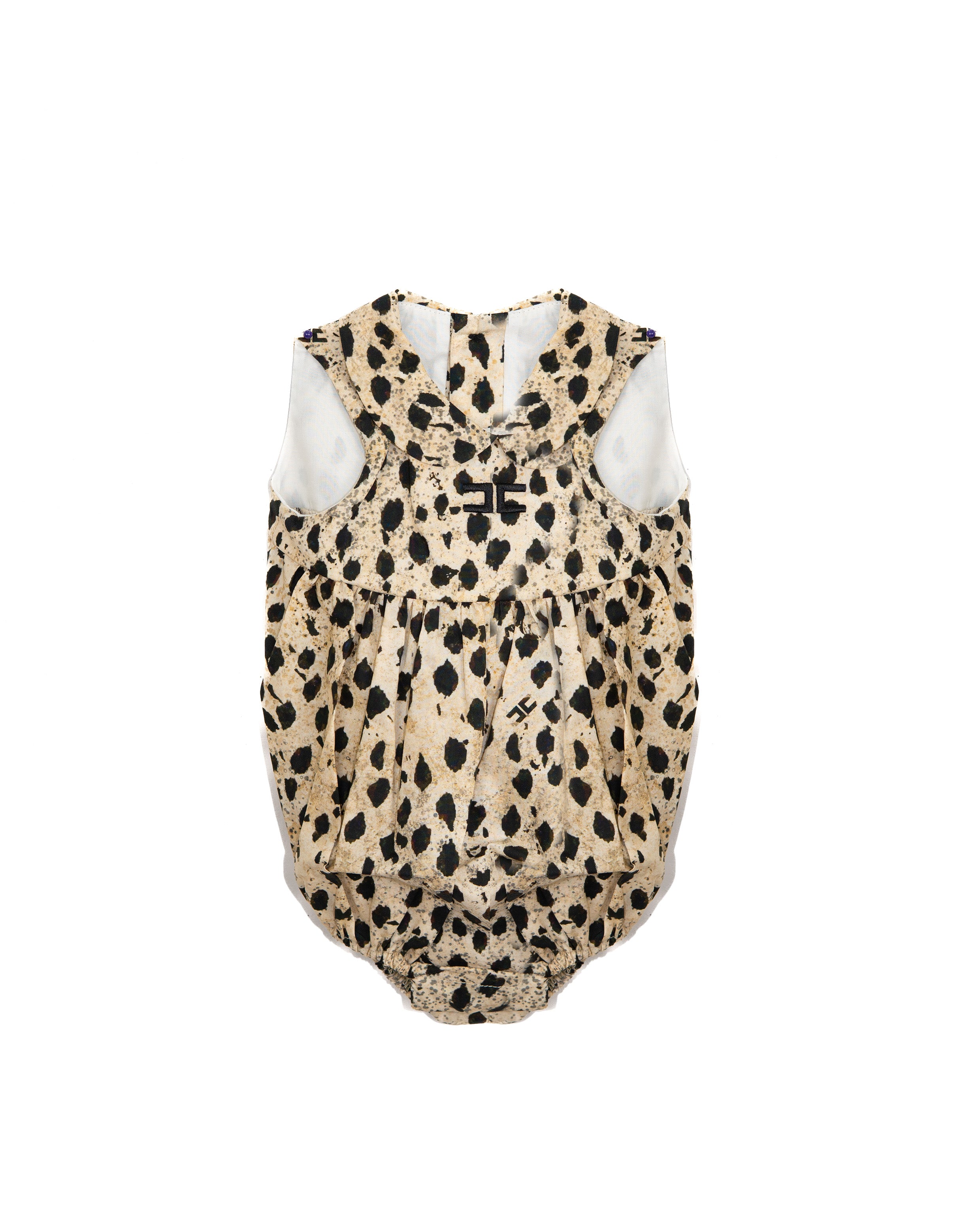 Pagliaccetto Elisabetta Franchi La Mia Bambina realizzato in tessuto leggero con elegante stampa leopardata all-over. Il modello presenta una linea morbida e confortevole, ideale per accompagnare i movimenti della neonata con stile. Il logo Elisabetta Franchi ricamato sul davanti aggiunge un tocco iconico e riconoscibile. Chiusura pratica sul fondo per facilitare il cambio.