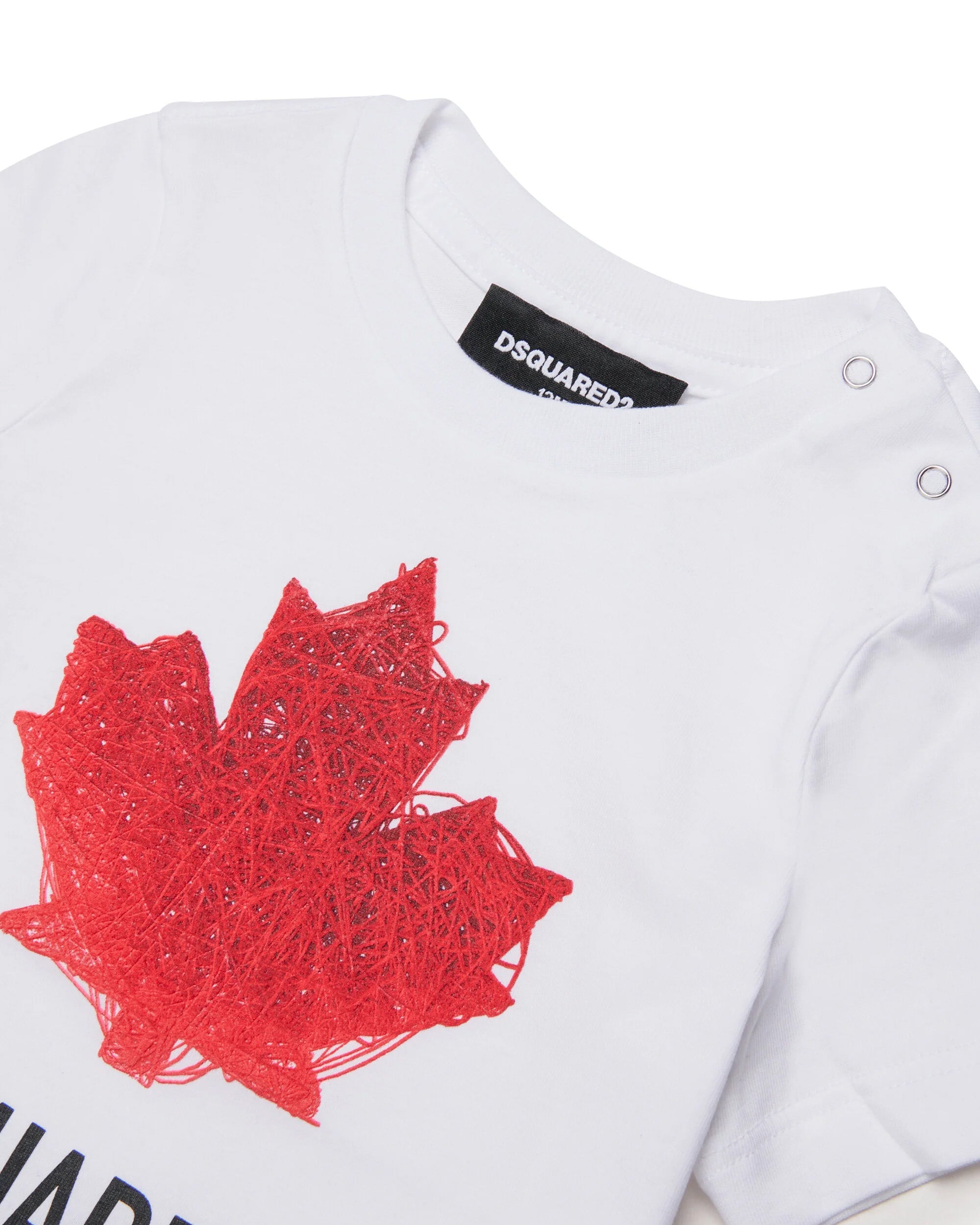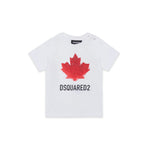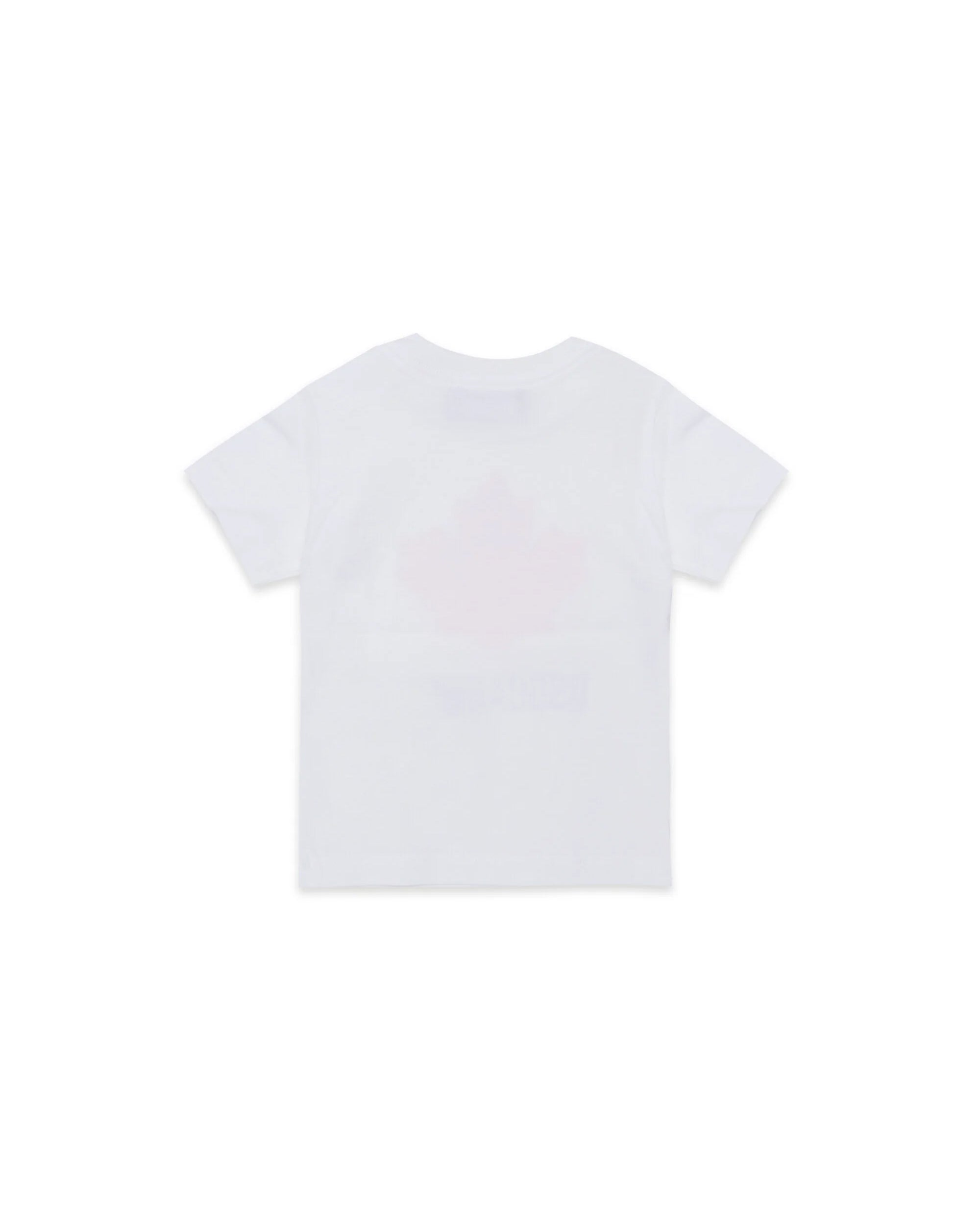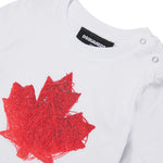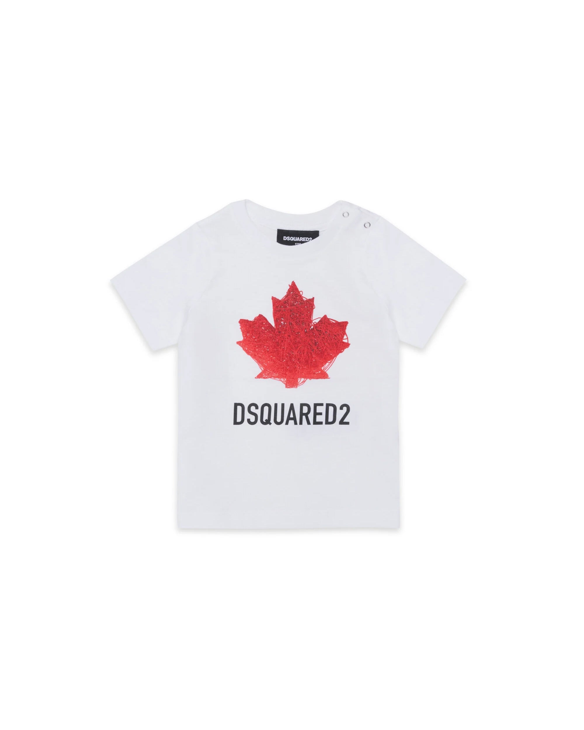 Dsquared2 Kids T-shirt Bianca con Stampa Logo Foglio D'acero con Bottoni Apertura Spalla per Neonati