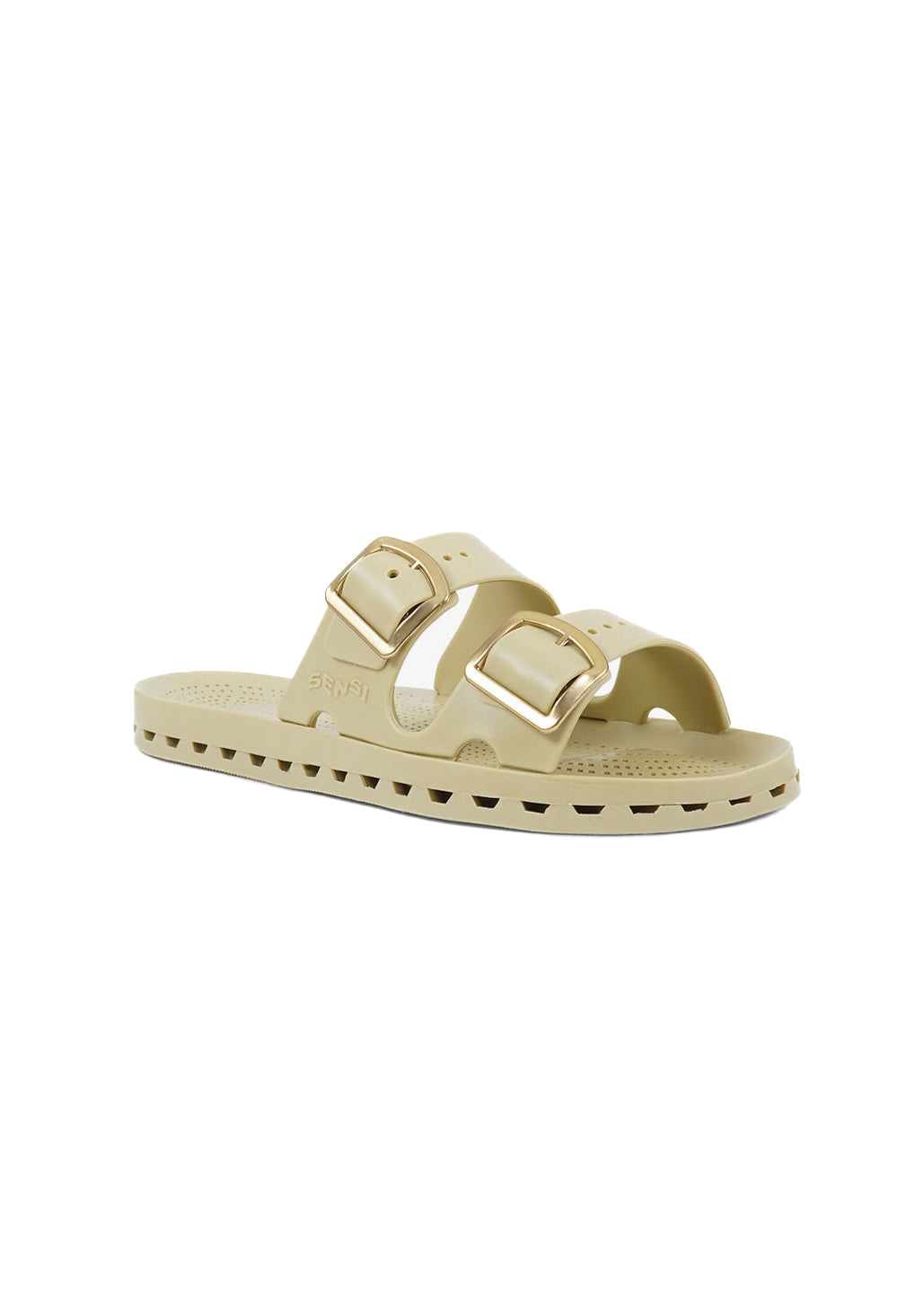 The Beige Double Band City Sandal for Children by Sensi Kids, available on Florence Kids, combines elegance and practicality. Made of soft beige rubber, it features adjustable buckles that guarantee a perfect fit. The simple and elegant design, enriched by a soft rubber finish, makes it versatile for any occasion, from casual to more sophisticated clothing. The non-slip sole and perforated tread make the sandal the ideal choice for the summer while the pull-on design makes it easy and practical to wear. It is ideal for wearing with a light dress or a more structured ensemble such as capri pants and a patterned blouse.
