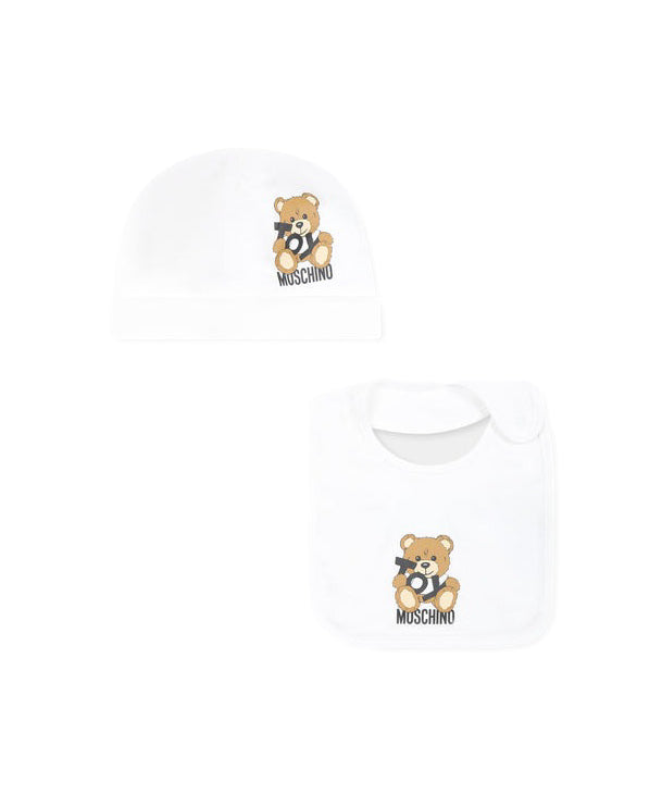 Moschino Kids Cappello con Bavetta Panna con Logo Teddy Bear per Neonati