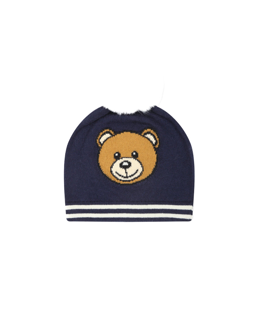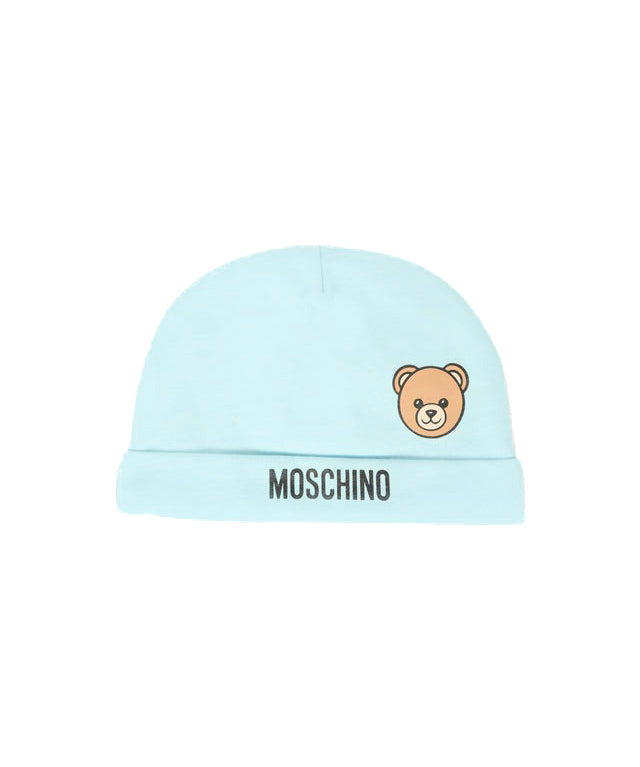 Moschino Kids Cappello Celeste con Logo Teddy Bear per Neonati