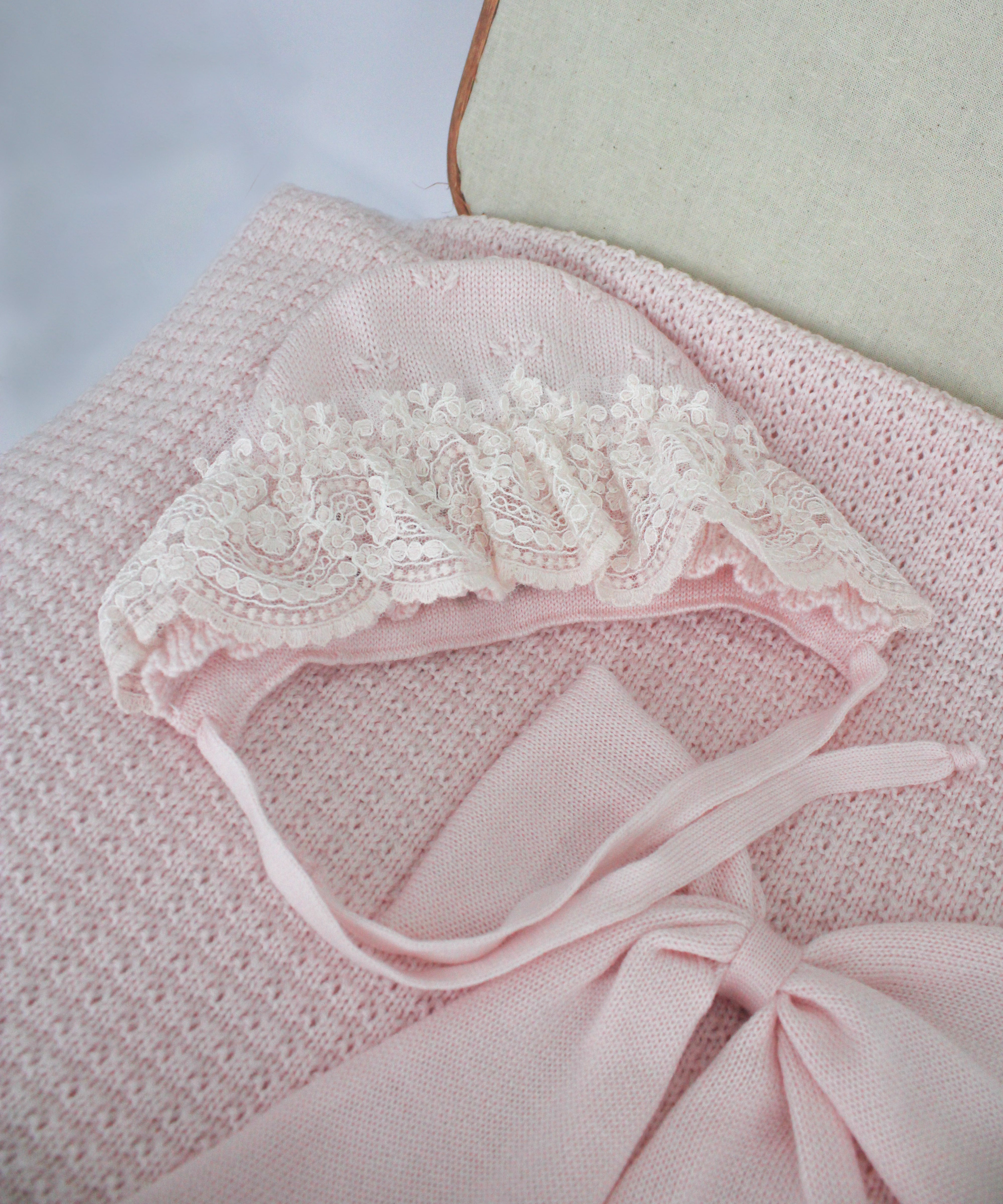 Marlù Lenzuolino Bianco/Rosa con Ricamo per Neonate