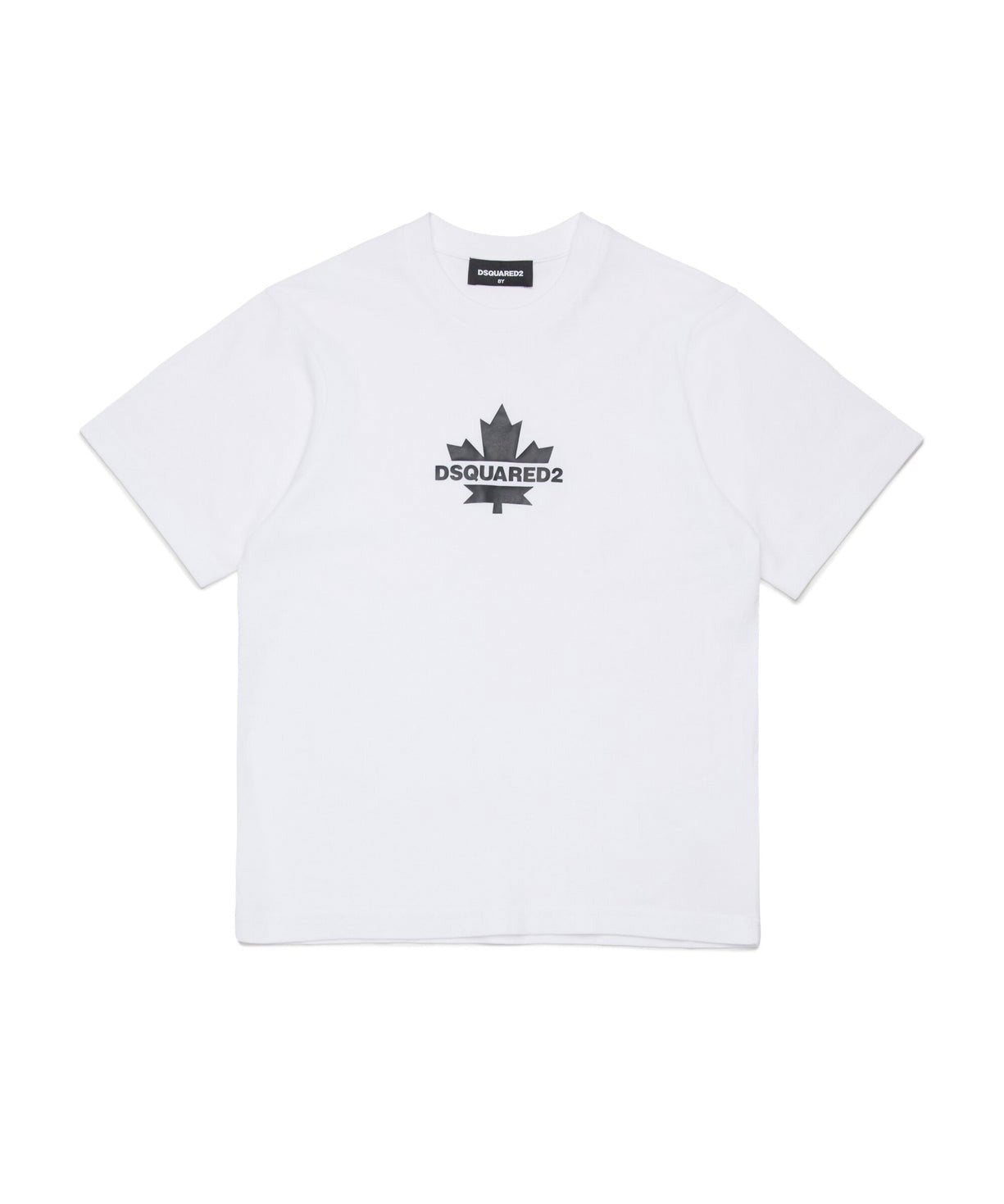 Dsquared2 Kids T-shirt Bianca con Stampa Leaf per Bambini
