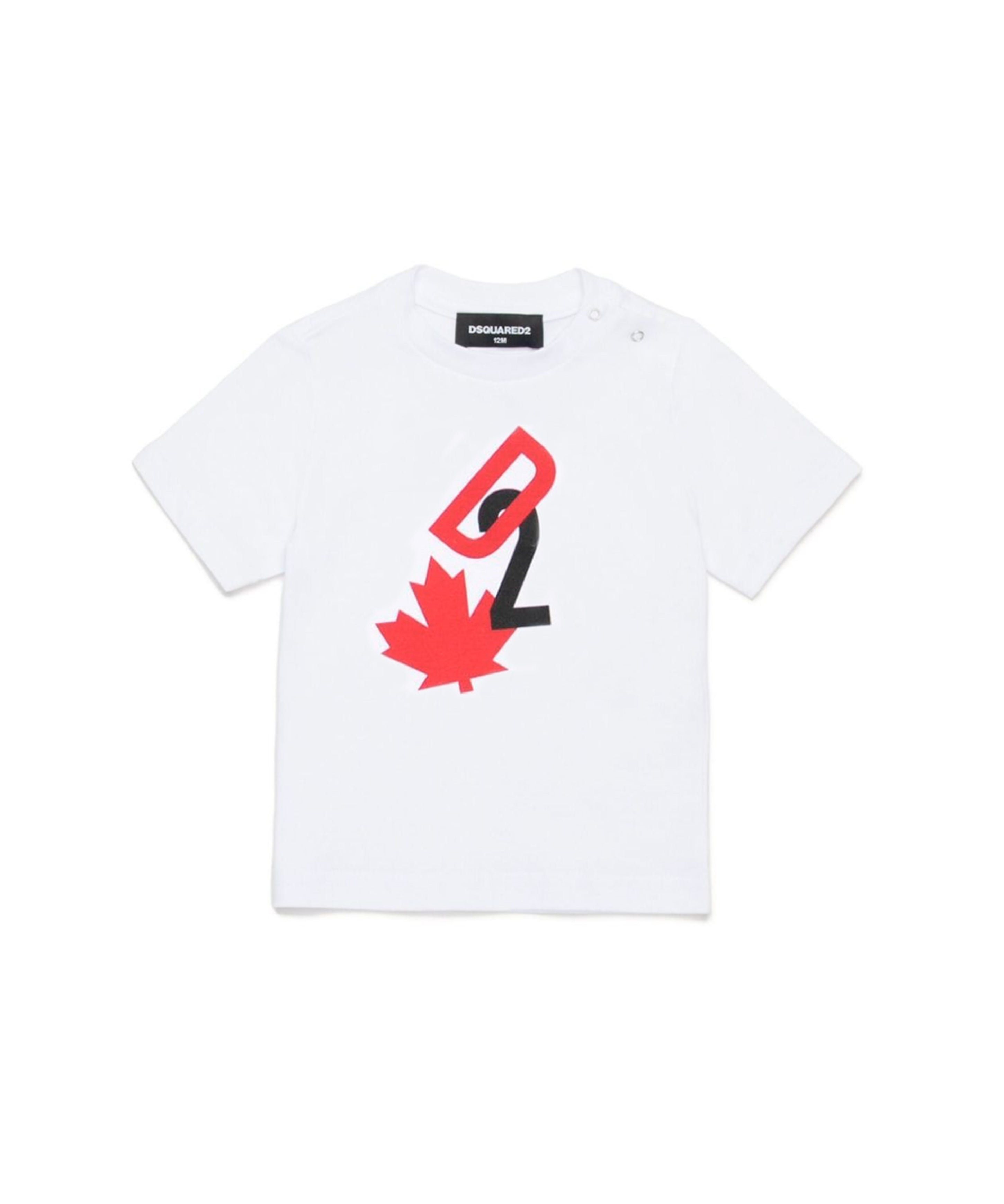 Dsquared2 Kids T-shirt Bianca con Stampa D2 Leaf per Neonati