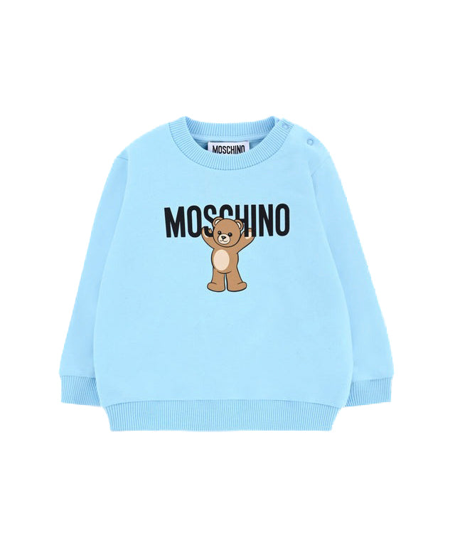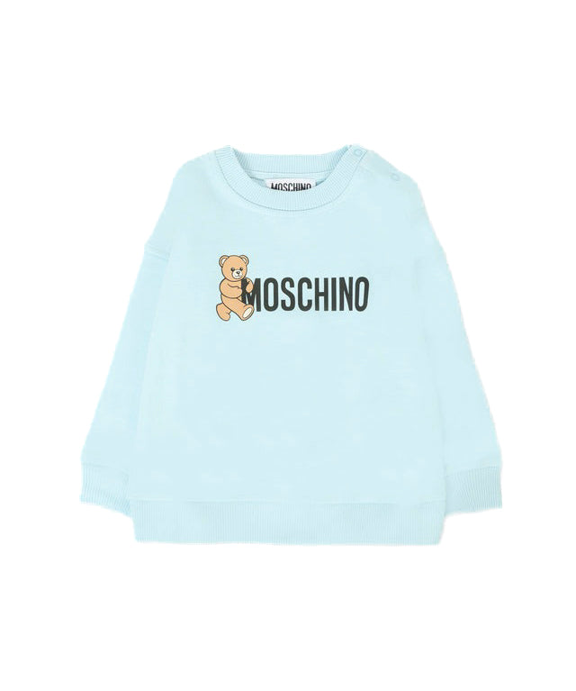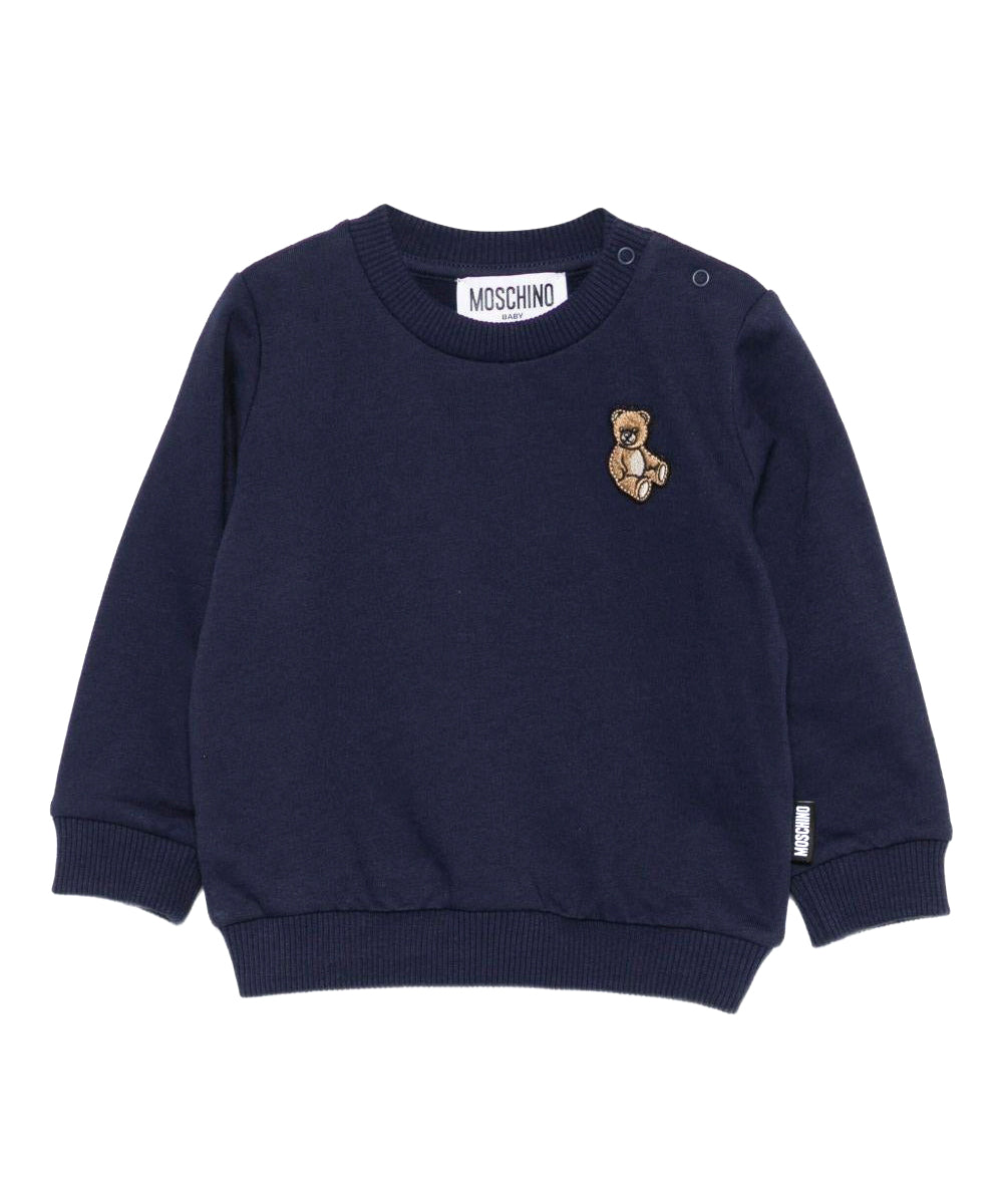 Moschino Kids Felpa Girocollo Navy con Stampa per Neonati