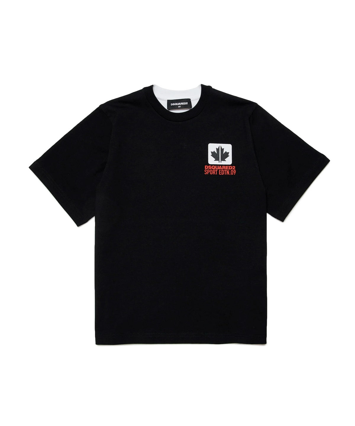 T-shirt con Stampa DSquared2 Kids in Cotone Marrone Chiaro/Nero Intenso | Jersey Morbido | Bordo a Coste | Logo sul Petto