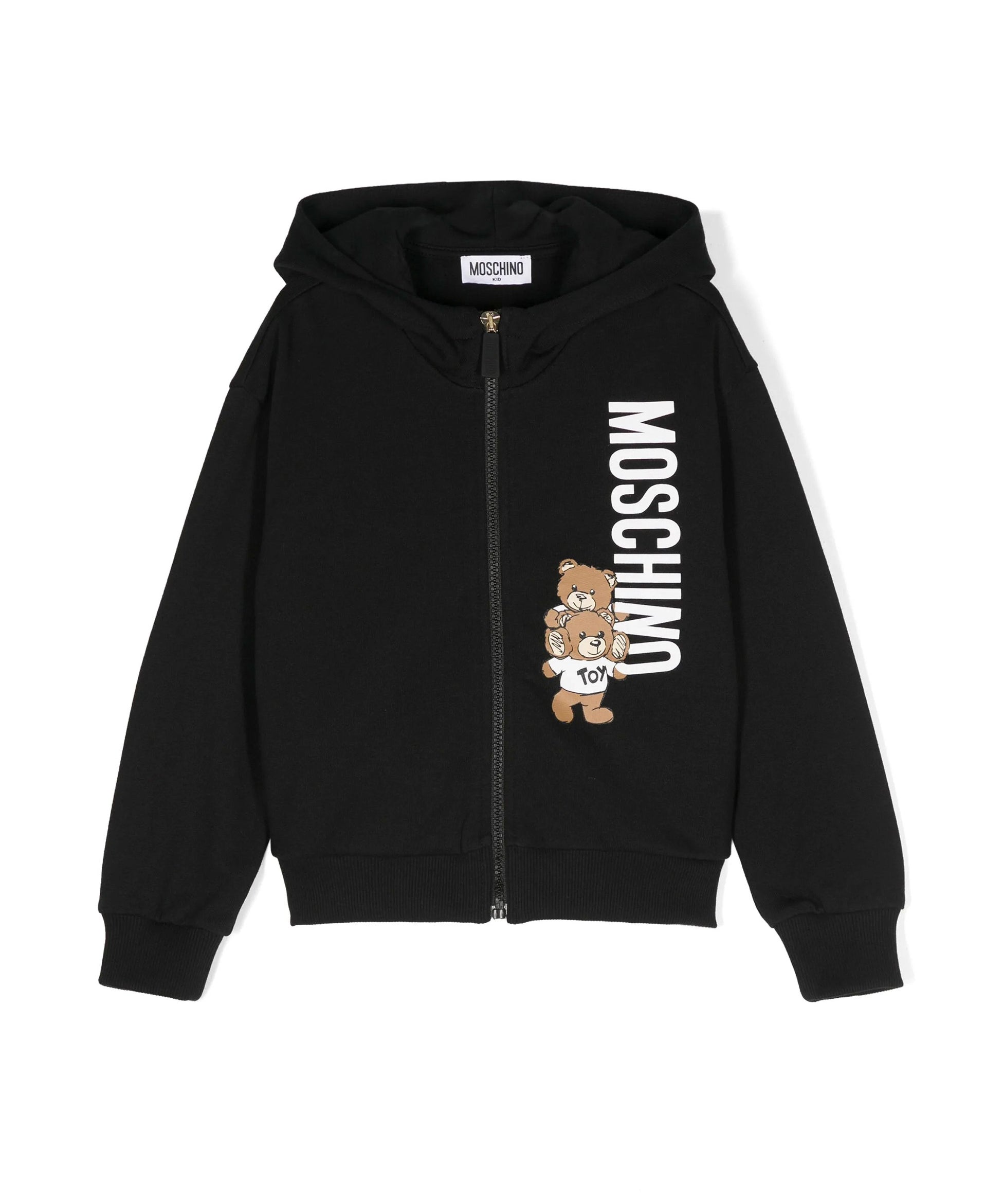 Moschino Kids Felpa Nera con Cappuccio e Stampa per Bambini