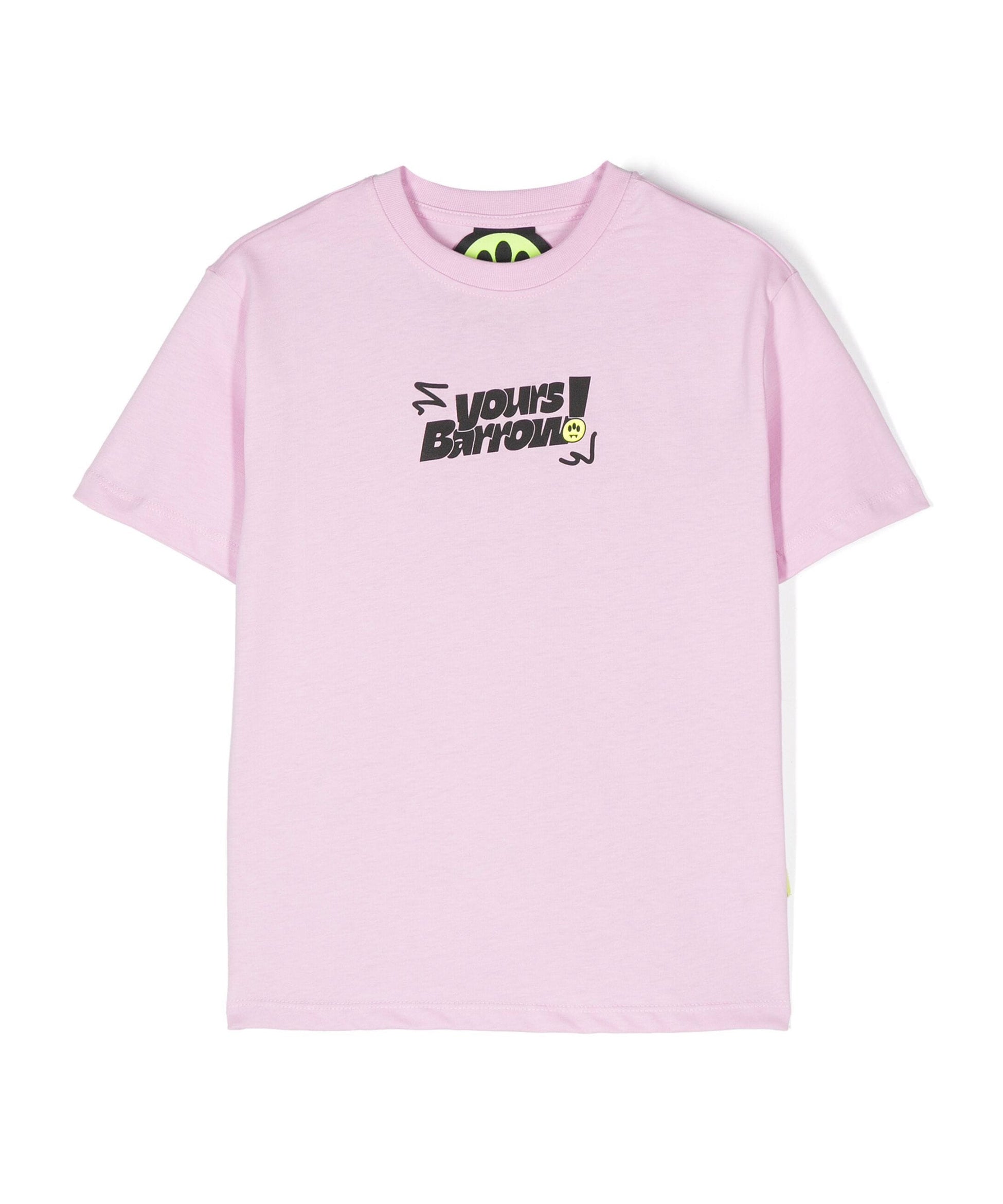 Barrow Kids T-shirt Fucsia con Stampa Logo e Smile per Bambine fronte