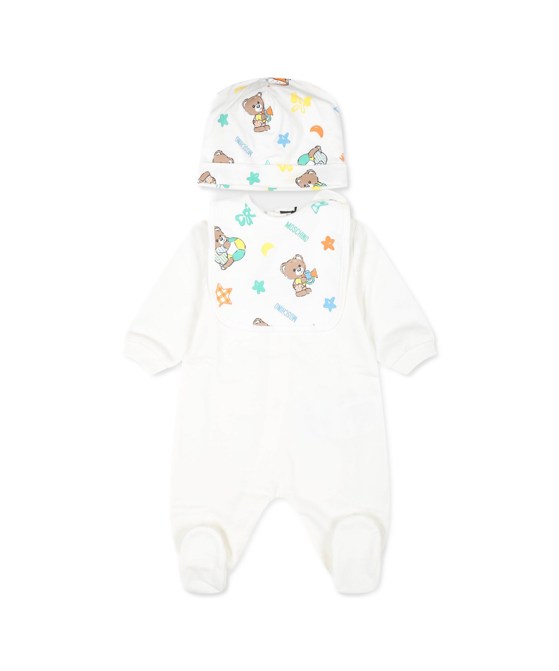Moschino Kids Tutina Panna con Cappellino con Teddy Bear per Neonate