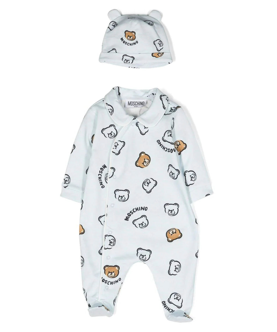 Moschino Kids Tutina con Cappellino Celeste per Neonati