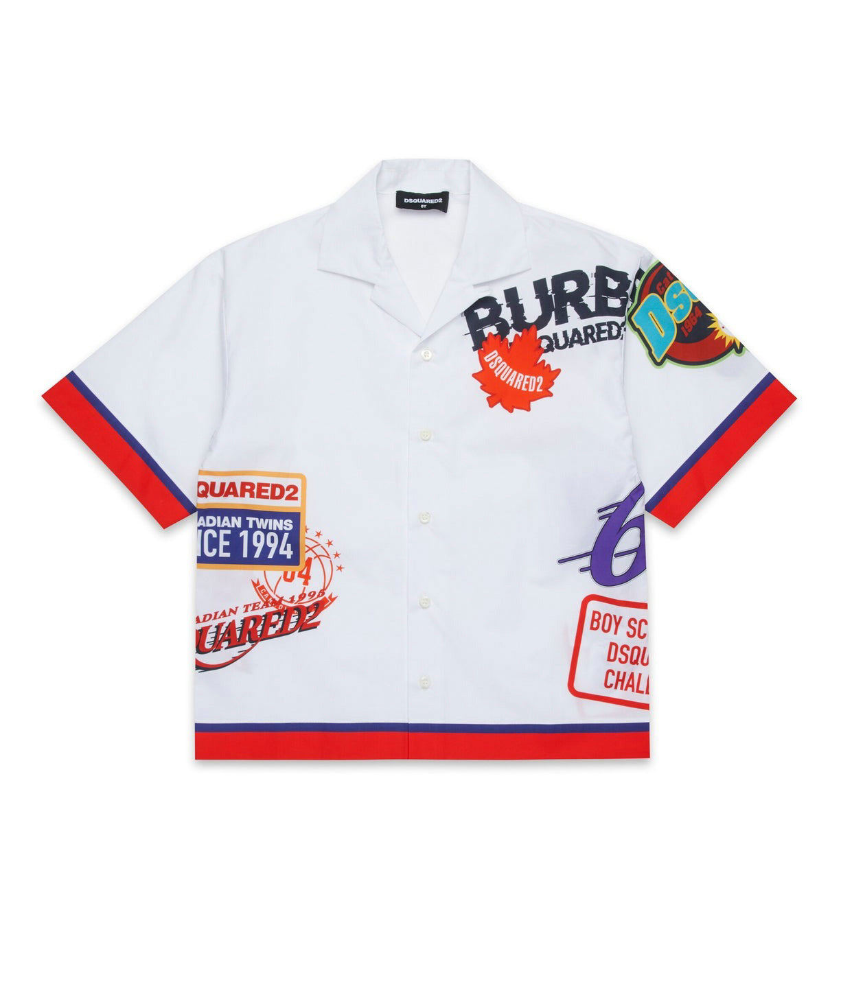 Dsquared2 Kids Camicia Bianca in Popeline con Patch Logo Surf per Bambini