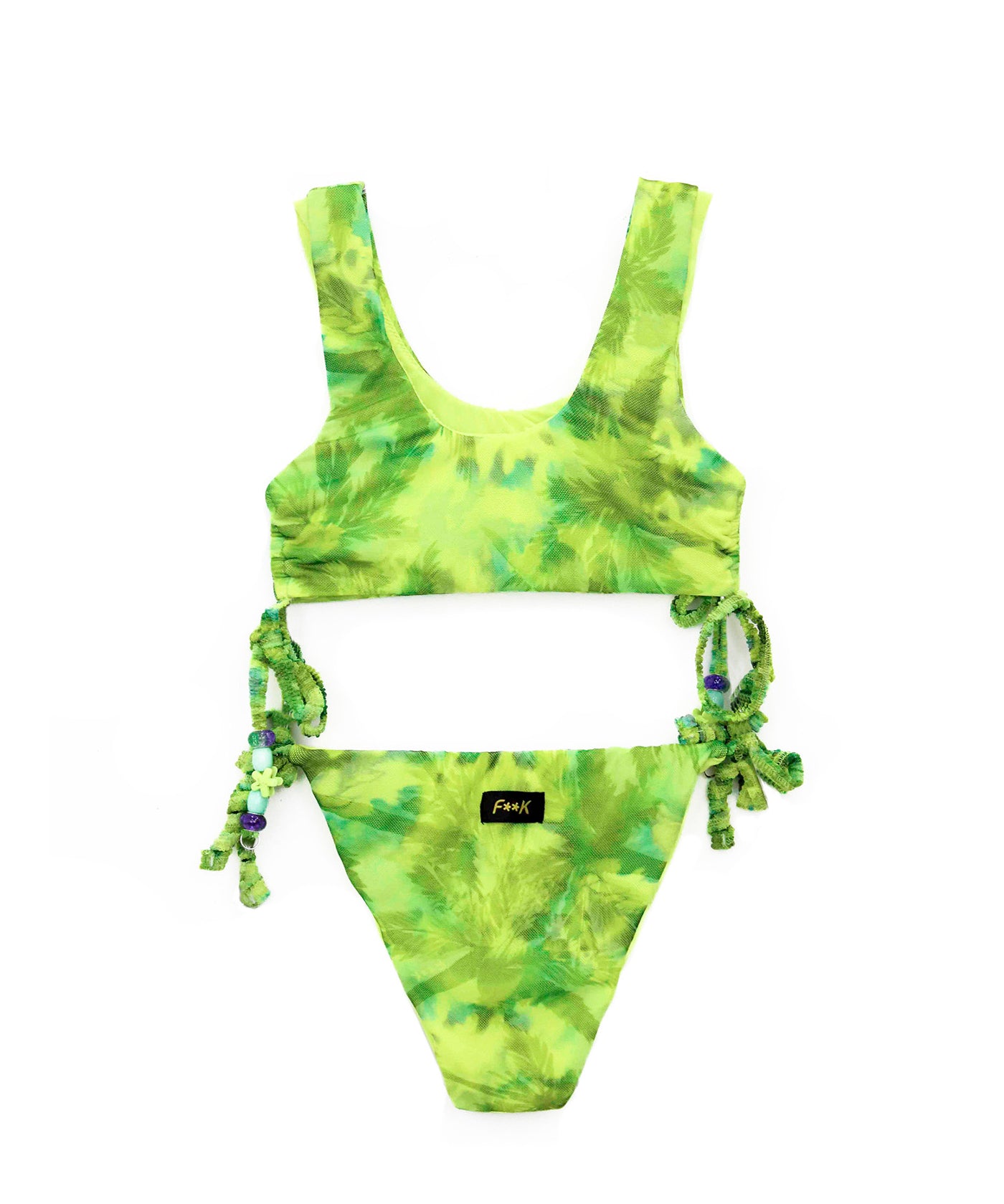 EffeK Costume Bikini Fantasia Maculata Verde/Fucsia per Bambine