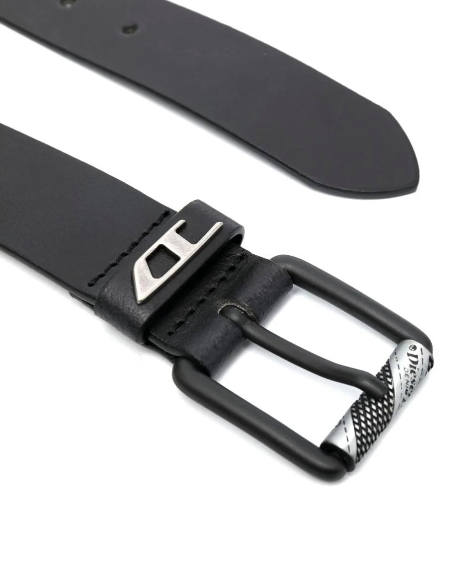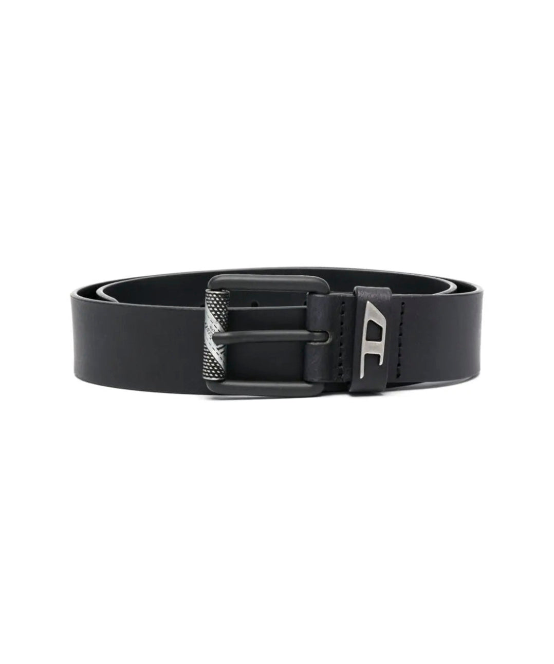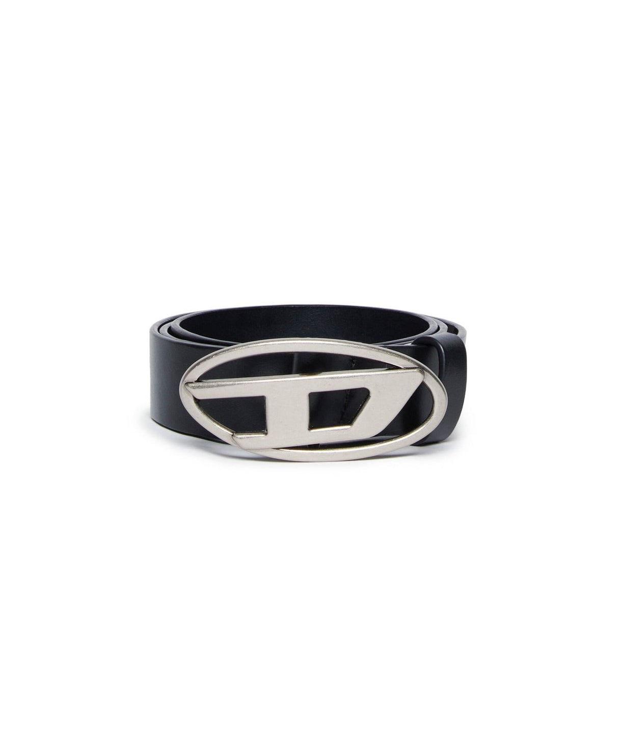 Diesel Kids Cintura Nera in Pelle con Logo Oval D 1