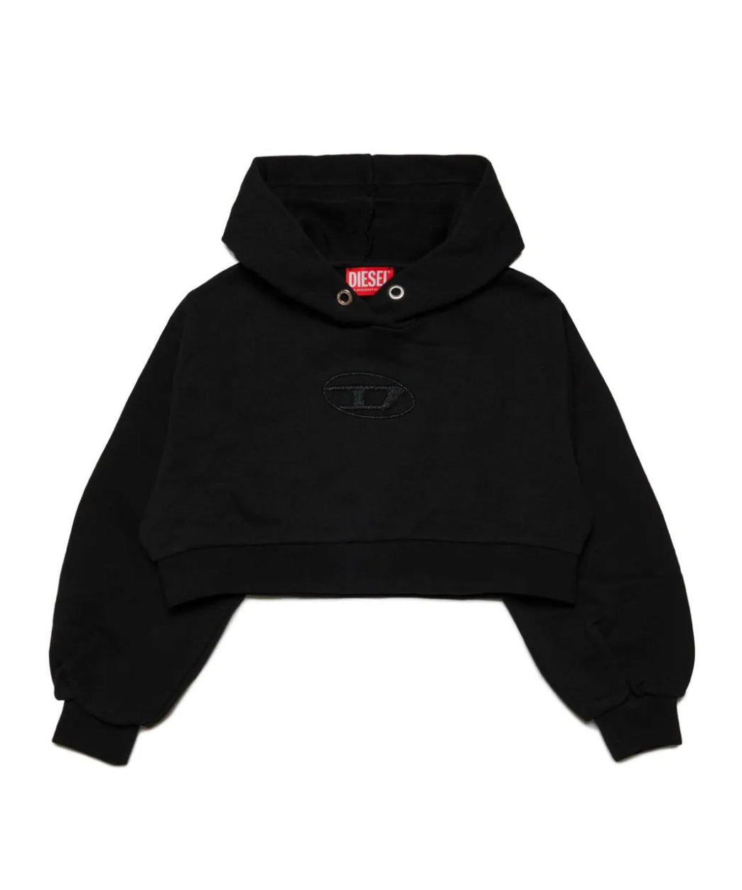 Diesel Kids Felpa con Cappuccio Nera Oval D per Bambine