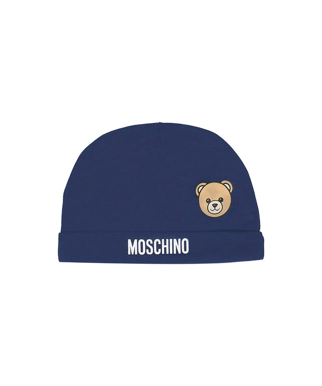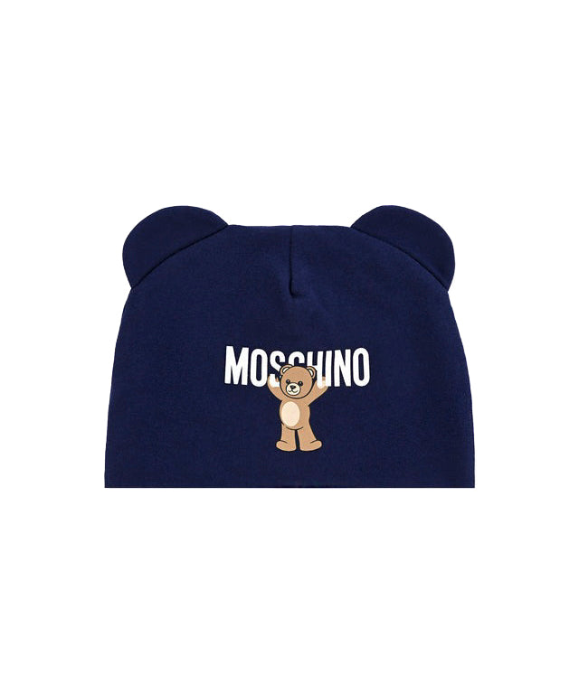 Moschino Kids Cappellino Panna con Stampa Logo Teddy Bear per Neonati