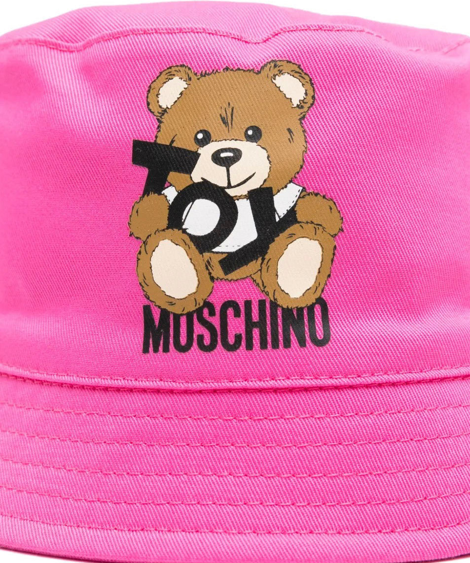 Moschino Kids Cappellino Rosa con Stampa Logo Teddy Bear per Neonate (dettaglio)