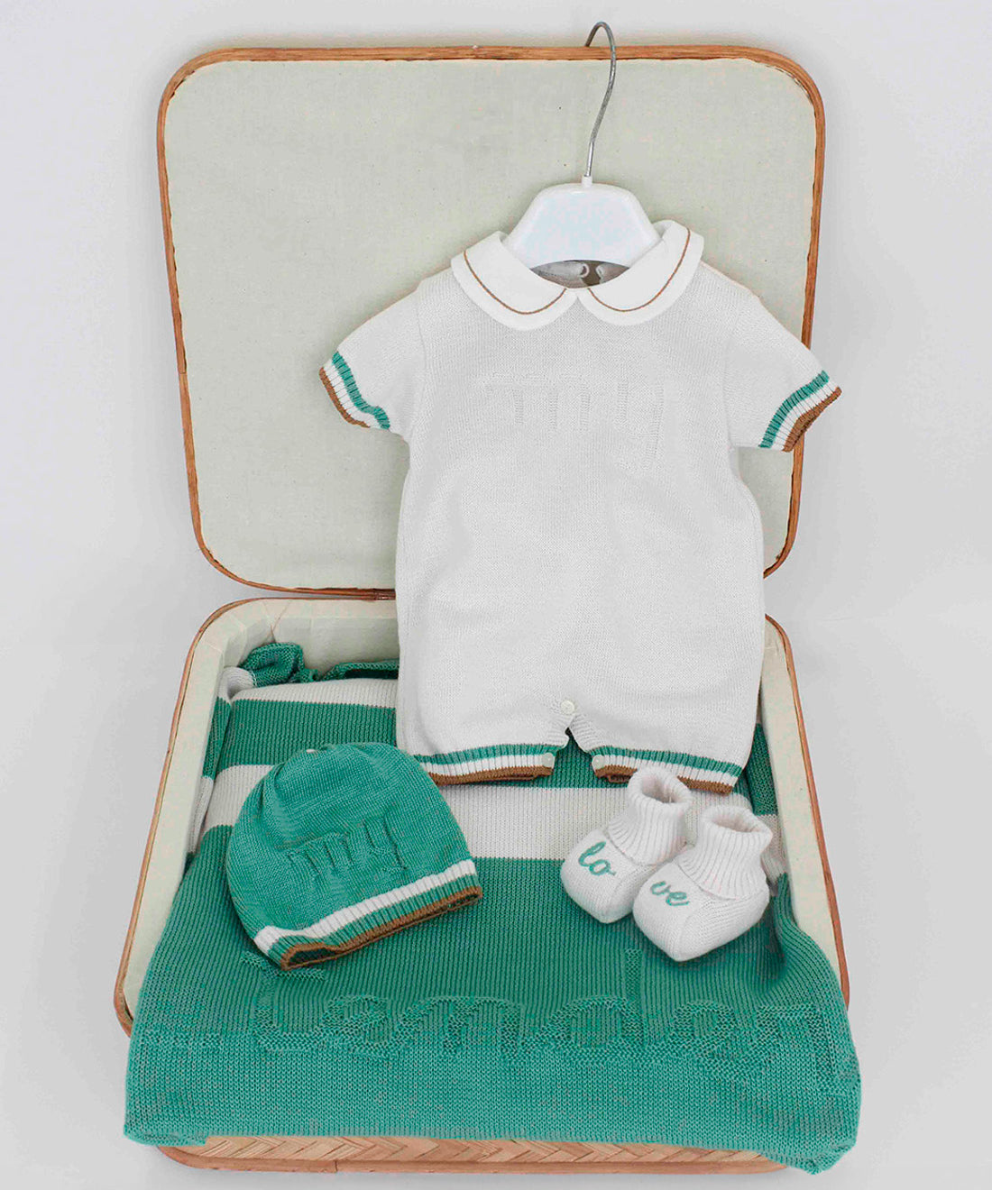 Marlu Corredino Celeste/Bianco con Completo per Neonati