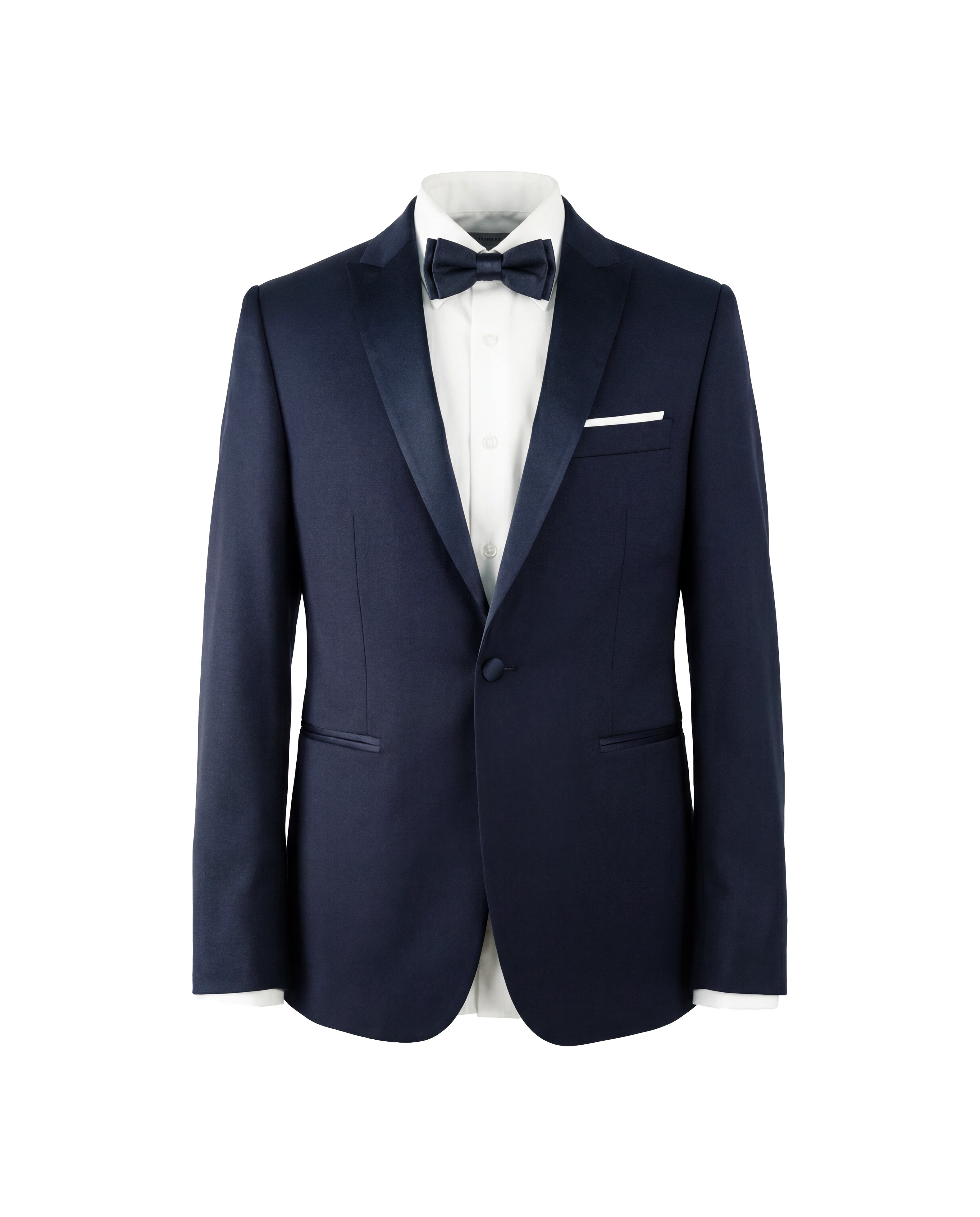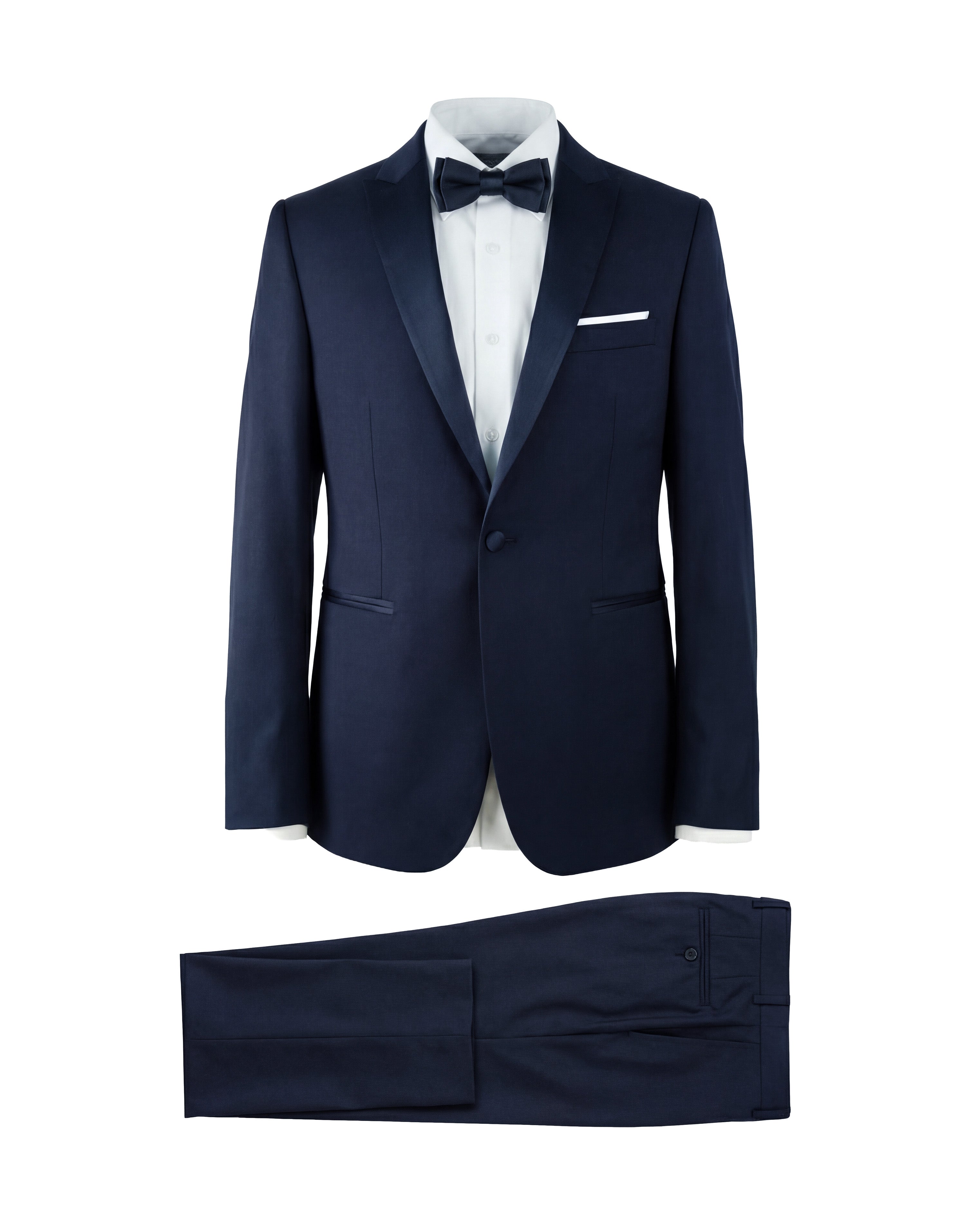 Il design si distingue per il raffinato gioco di contrasti tra il corpo della giacca in tessuto di alta qualità e i rever a lancia in satin blu notte, che donano una lucentezza discreta e un'aura di prestigio al look. Composto da giacca strutturata e pantalone coordinato dal taglio asciutto, lo smoking è realizzato con fibre leggere e traspiranti che assicurano una vestibilità impeccabile e il massimo comfort durante gli eventi della stagione calda. Ogni dettaglio, dalla precisione delle asole ai bottoni rivestiti, riflette l'eccellenza della sartoria italiana di Alessandro Martinez.