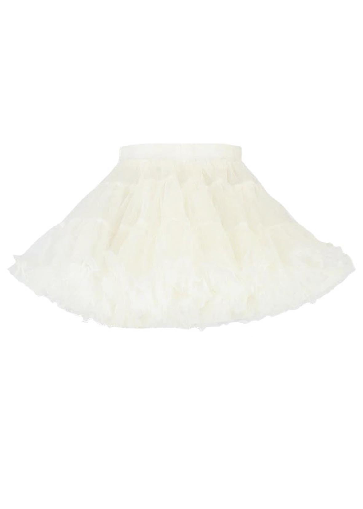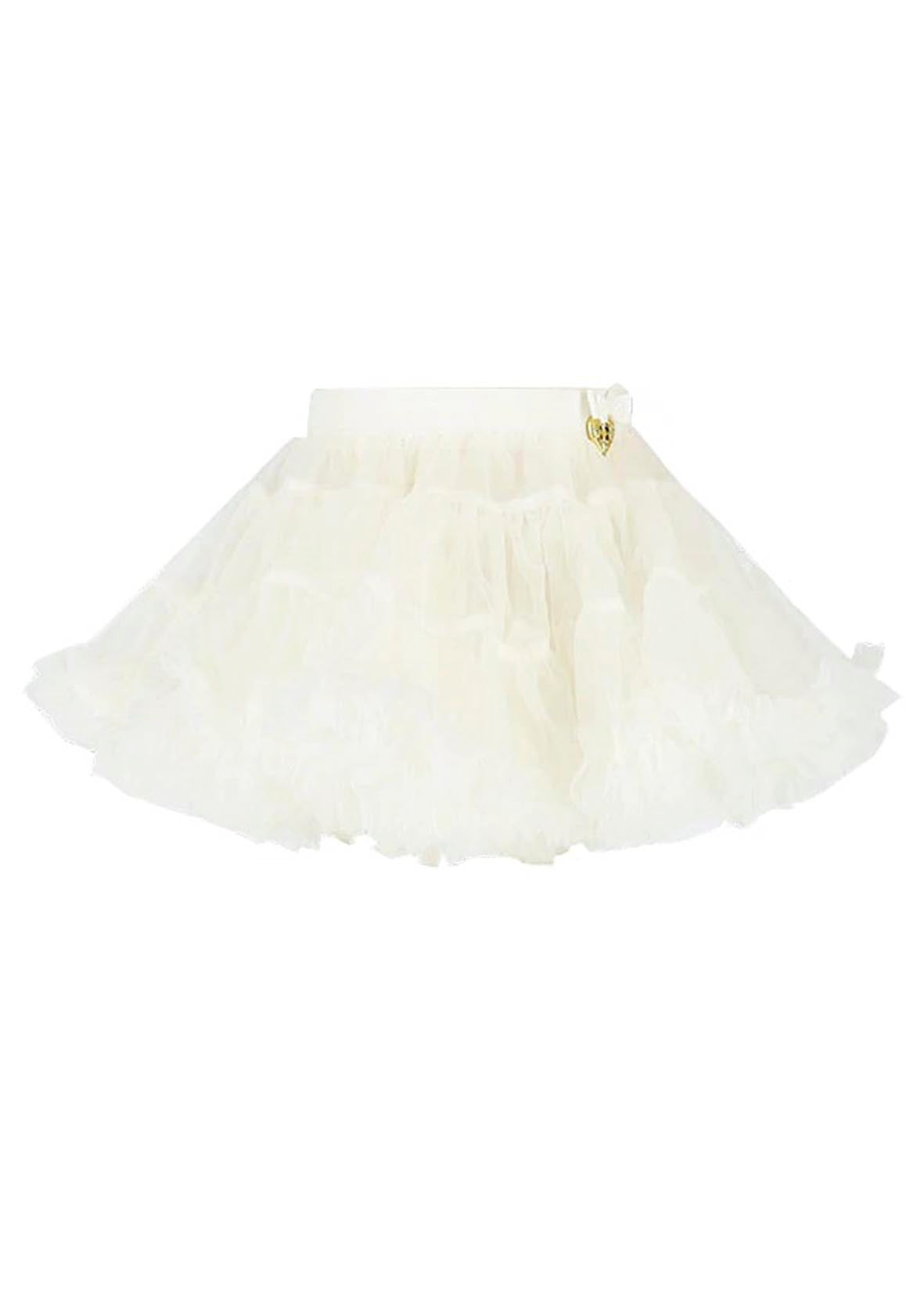 Angel's Face White Skirt • 100% nylon Lining: 95% cotton 5% elastane • Machine washable 30* • Angel's Face signature bow and golden heart pendant • Fully lined • Elasticated waistband