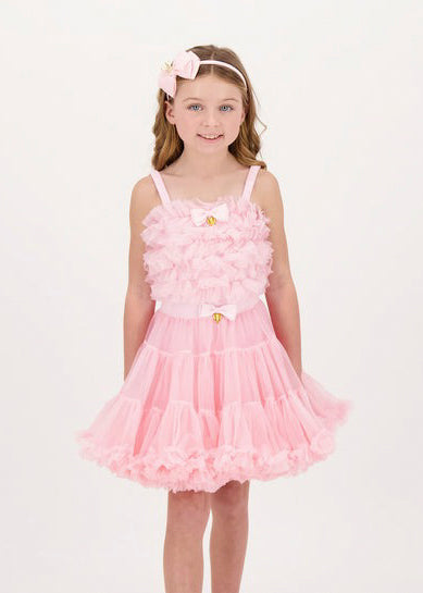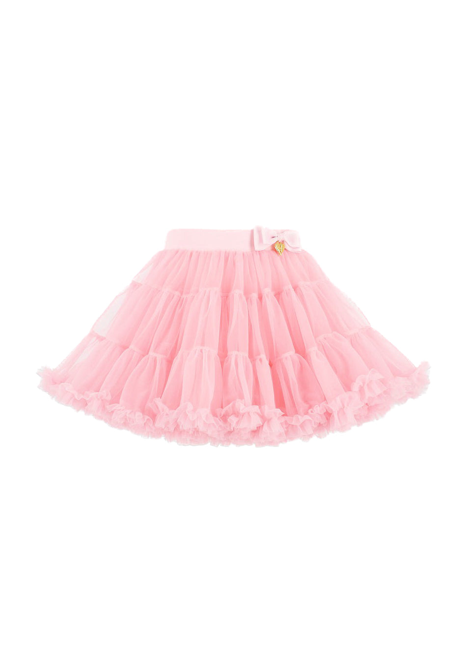 Our iconic Angel's Face Pixie Pink Tutu for girls is a stylish and versatile addition to your little girl's wardrobe. Featuring layer upon layer of delicate ruffled tulle, this tutu is finished with a soft elasticated waistband and a cosy jersey lining for comfort during wear. Perfect for any occasion, pair it with a pretty top and sparkly shoes for a princess look, or with wellies and one of our logo jumpsuits for a country chic look. Complete with a signature bow and gold heart charm, this tutu is the perfect accessory for any special occasion, packaged in a gorgeous vintage Angel's Face hat box.