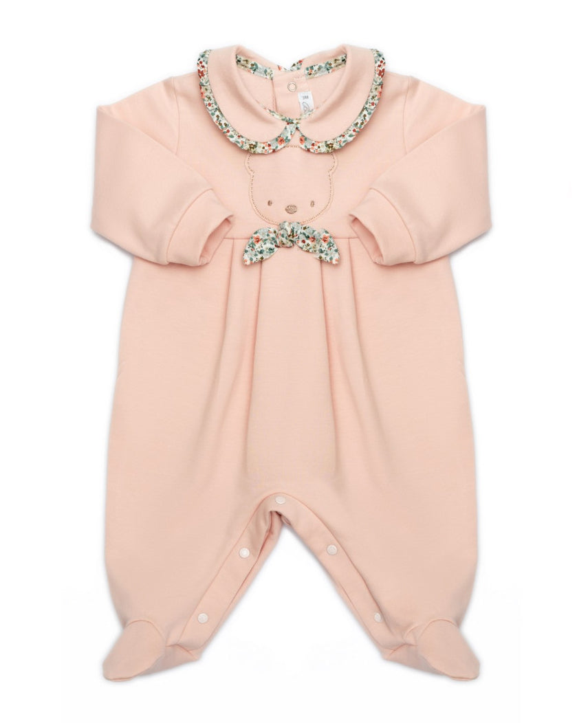 Barcellino Kids Tutina Rosa con Colletto Floreale e Fiocco per Neonate