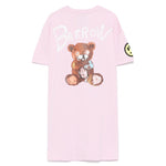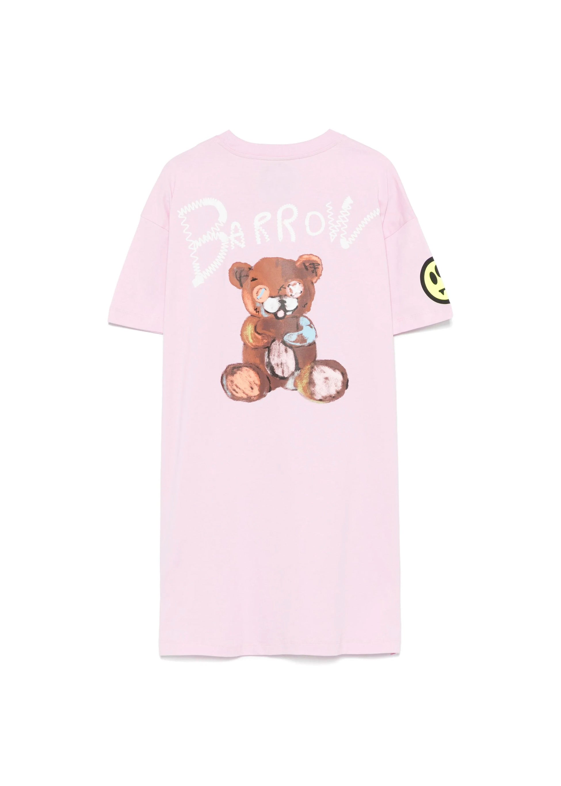 Discover the Barrow Kids pink t-shirt dress for girls, a trendy and comfortable piece. With side slits and an embossed logo, this dress also features a bear detail, adding a touch of fun style. The dropped shoulders and relaxed fit make it ideal for a casual but refined look. Perfect for warmer days, it is easy to match and guarantees comfort and practicality. Available at Florence Kids.