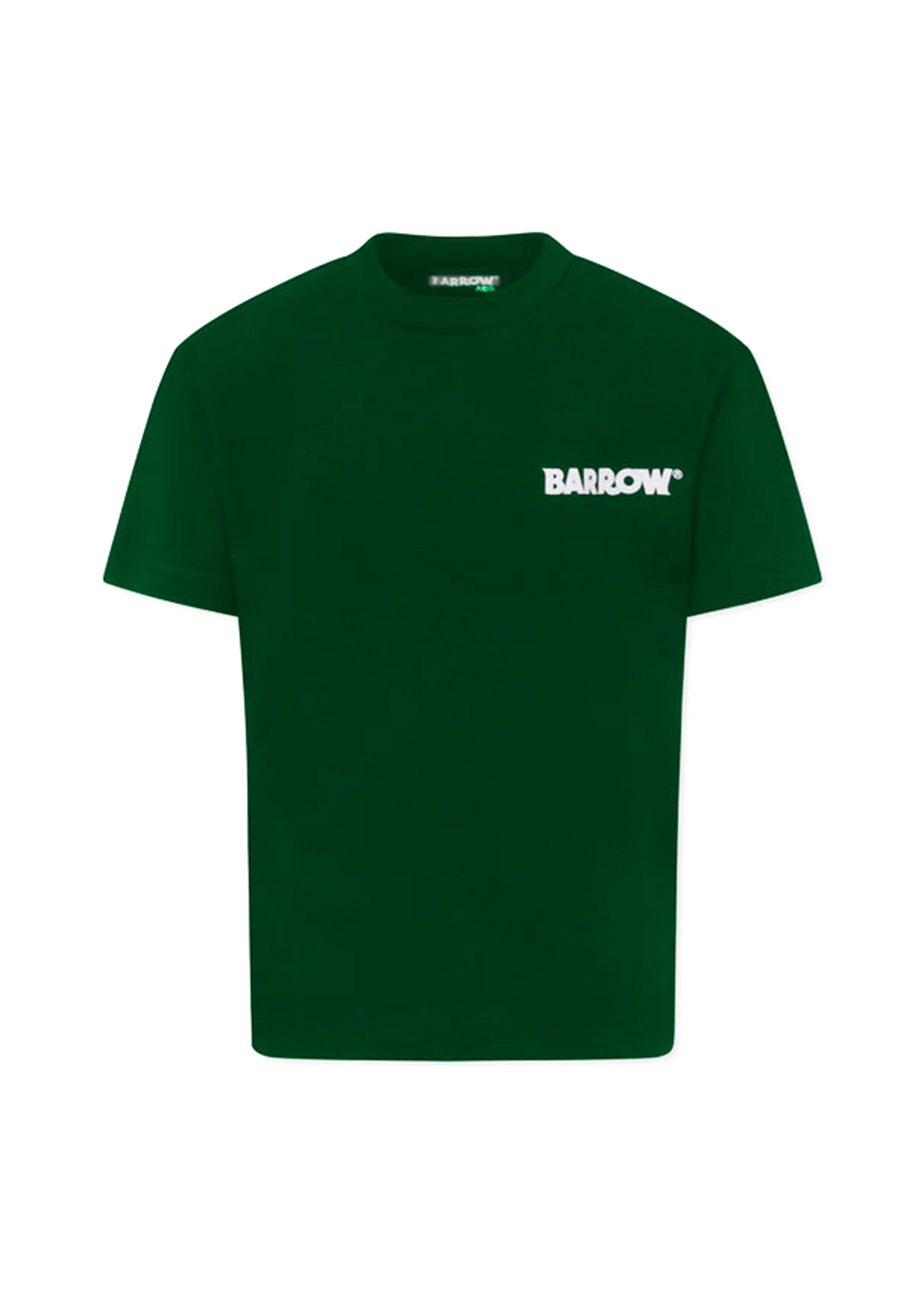 La t-shirt verde Barrow Kids per bambini è un capo fresco e di tendenza, perfetto per la stagione estiva. Realizzata in cotone morbido, presenta maniche corte e un girocollo a costine che garantisce comfort e vestibilità. Il design è arricchito dal logo Barrow sul petto e dalla vivace stampa sul retro, con l’iconico smile e una palma colorata, per un tocco street style dal sapore estivo. Una t-shirt versatile, ideale per creare outfit casual ma ricercati.