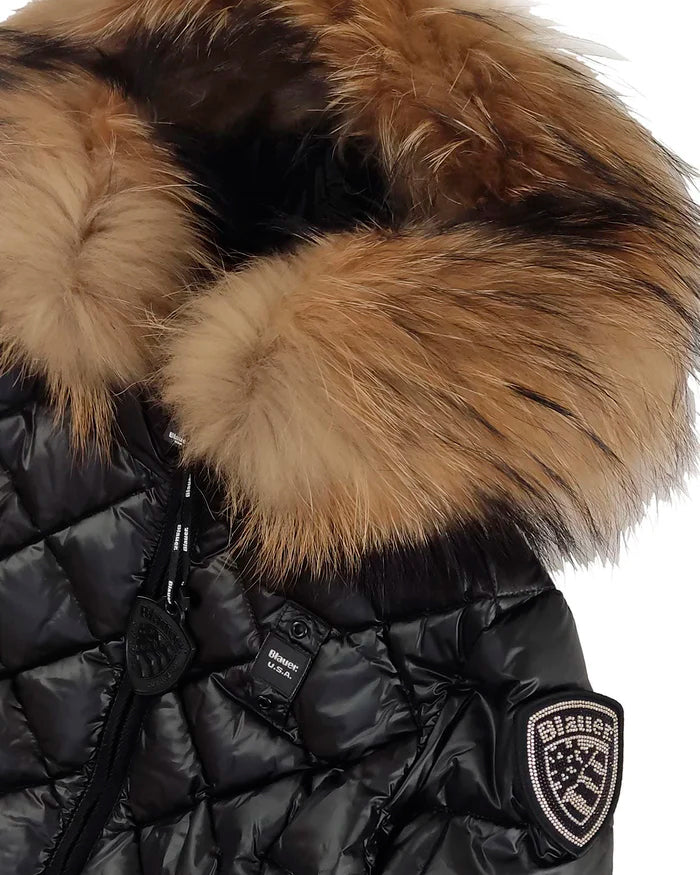 Blauer Kids Giubbino Nero Blauer Lotus Junior Cappuccio con Pelliccia per Bambine