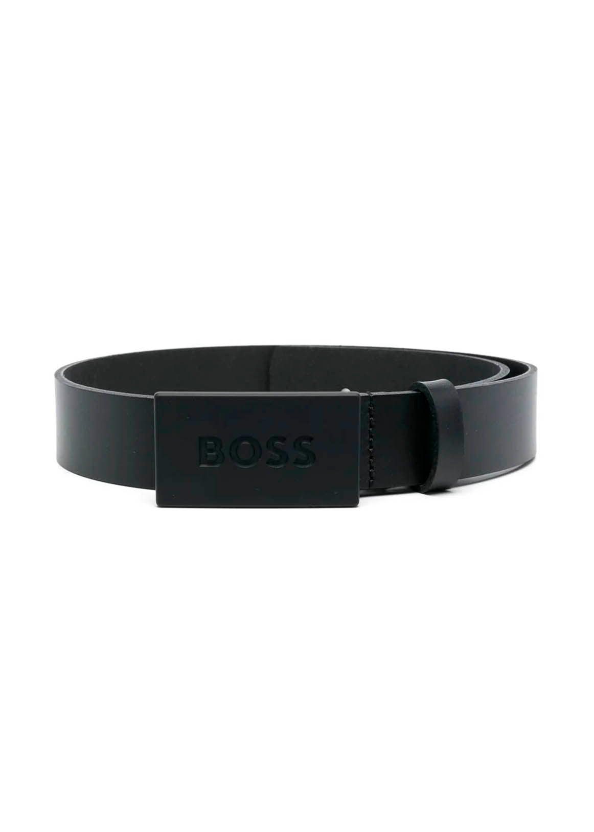 Boss Bambino Leather Belt with Engraved Logo Black - Florence Kids