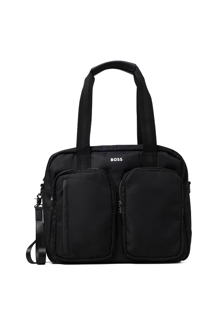 La borsa mamma BOSS Kids in nylon nero unisce stile e funzionalità, perfetta per le mamme moderne. Con logo a contrasto e applicazioni pratiche come fettucce laterali regolabili, questa borsa a spalla è ideale per il giorno. Dotata di un interno con fasciatoio estraibile e diverse tasche, offre spazio per tutto ciò che serve. Comoda e capiente, è un regalo perfetto per ogni occasione. La tracolla amovibile e regolabile aggiunge praticità.