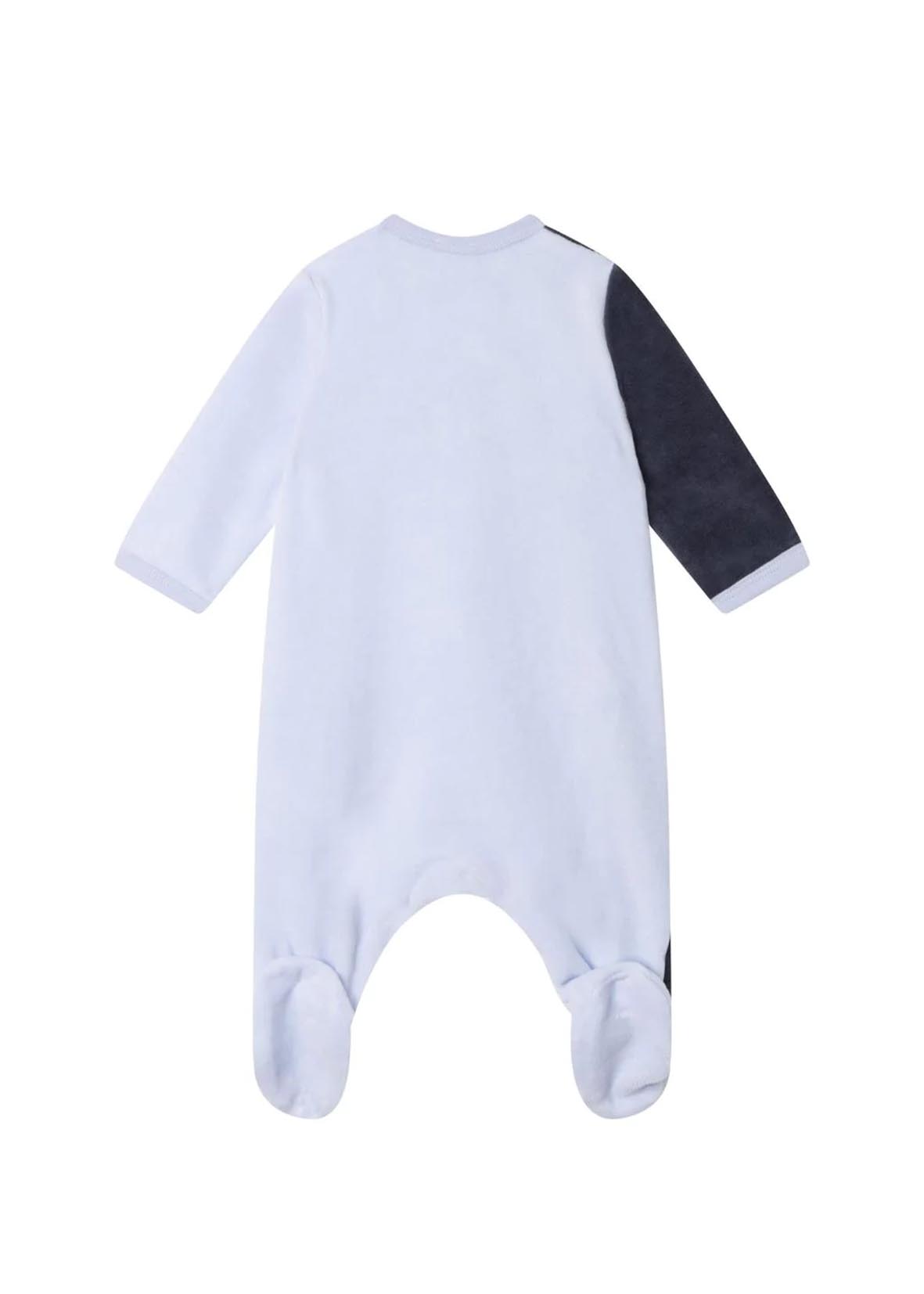 Cotton blend pyjamas, velour, two-tone design, embroidered logo on the chest, round neckline, off-centre front fastening and long sleeves.