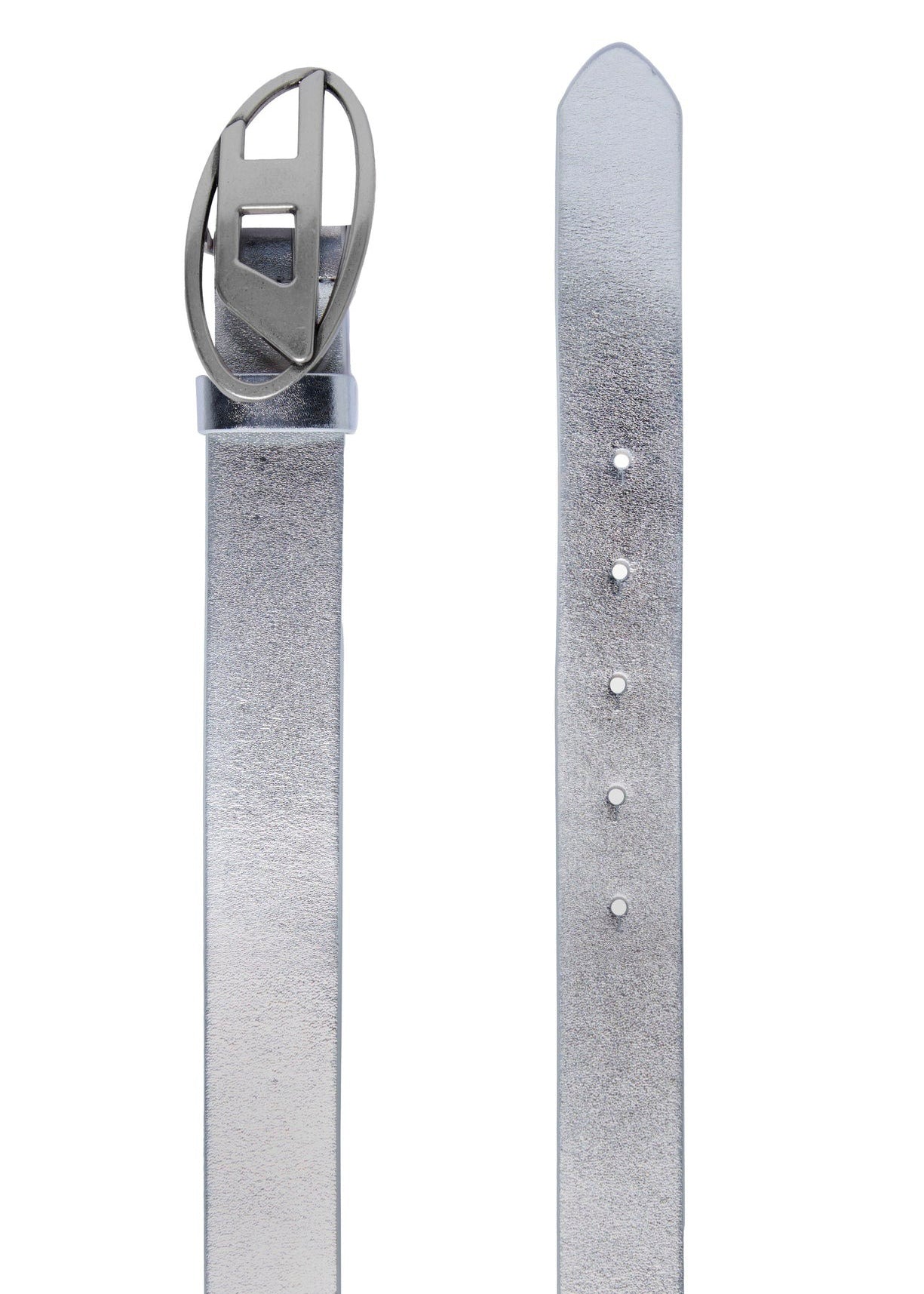 Diesel Kids Silver Leather Belt with Oval D Logo