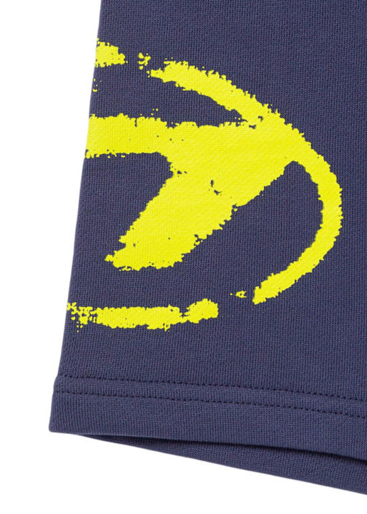 Diesel Kids fleece shorts for newborns, with a modern and comfortable design. Made of soft blue cotton, they feature an elastic waist that ensures a comfortable fit. The contrasting Oval D logo in used effect on the right leg adds a distinctive and fashionable touch. Perfect for a day of comfort, these shorts are ideal to combine with the coordinated Diesel sweatshirt for a complete and stylish look.