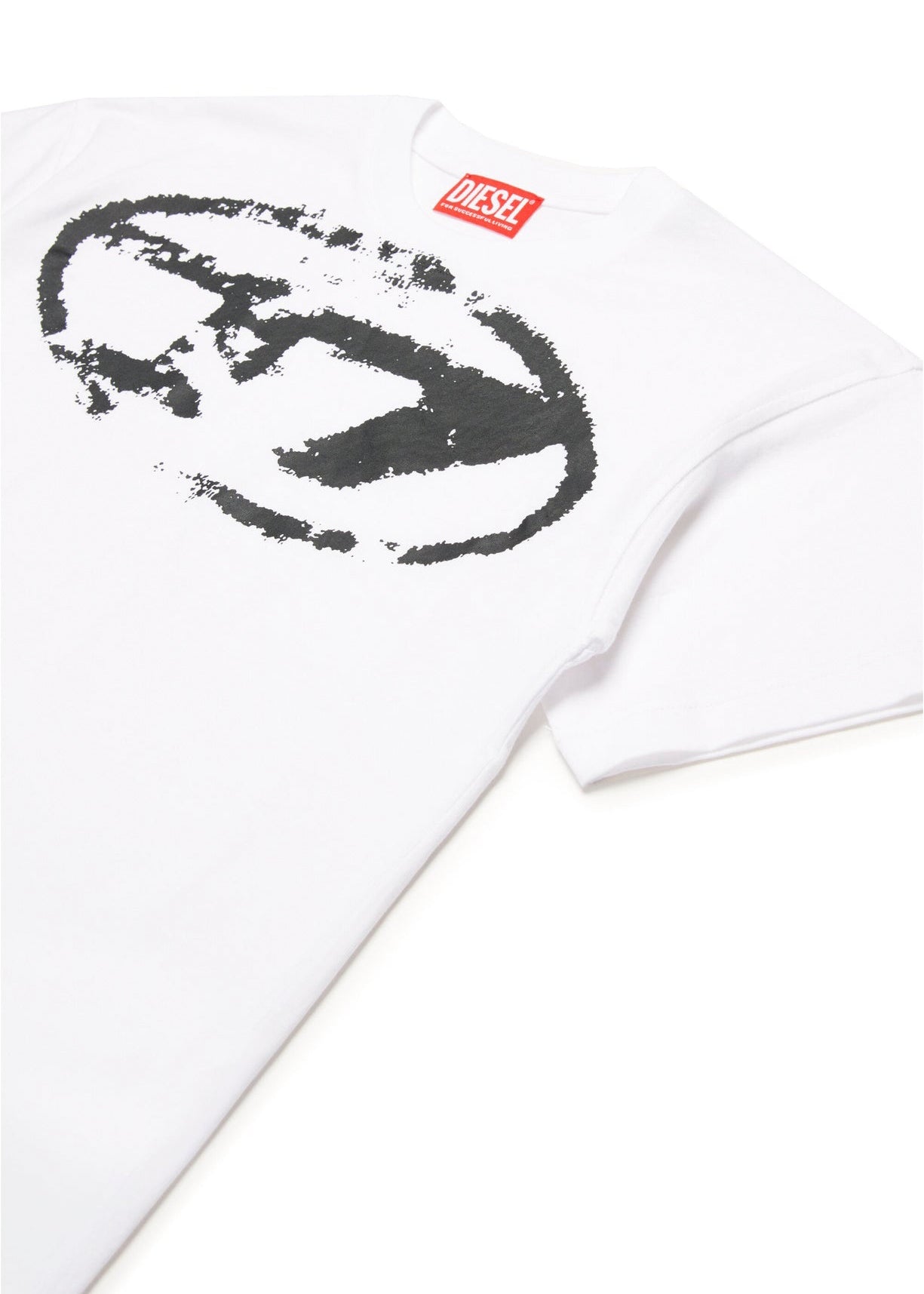 Diesel Kids T-shirt Bianca Used Effect con Oval D