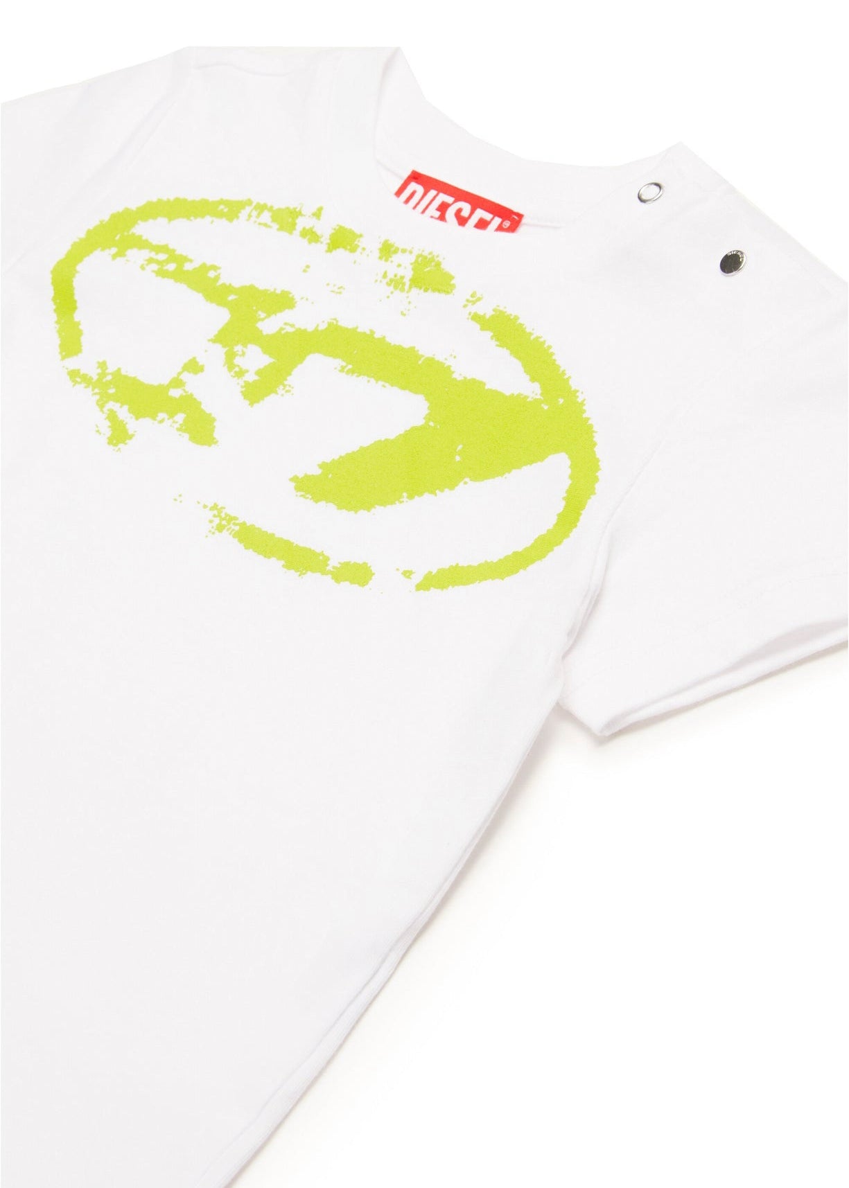 Diesel Kids White Used Effect T-shirt with Oval D for Babies