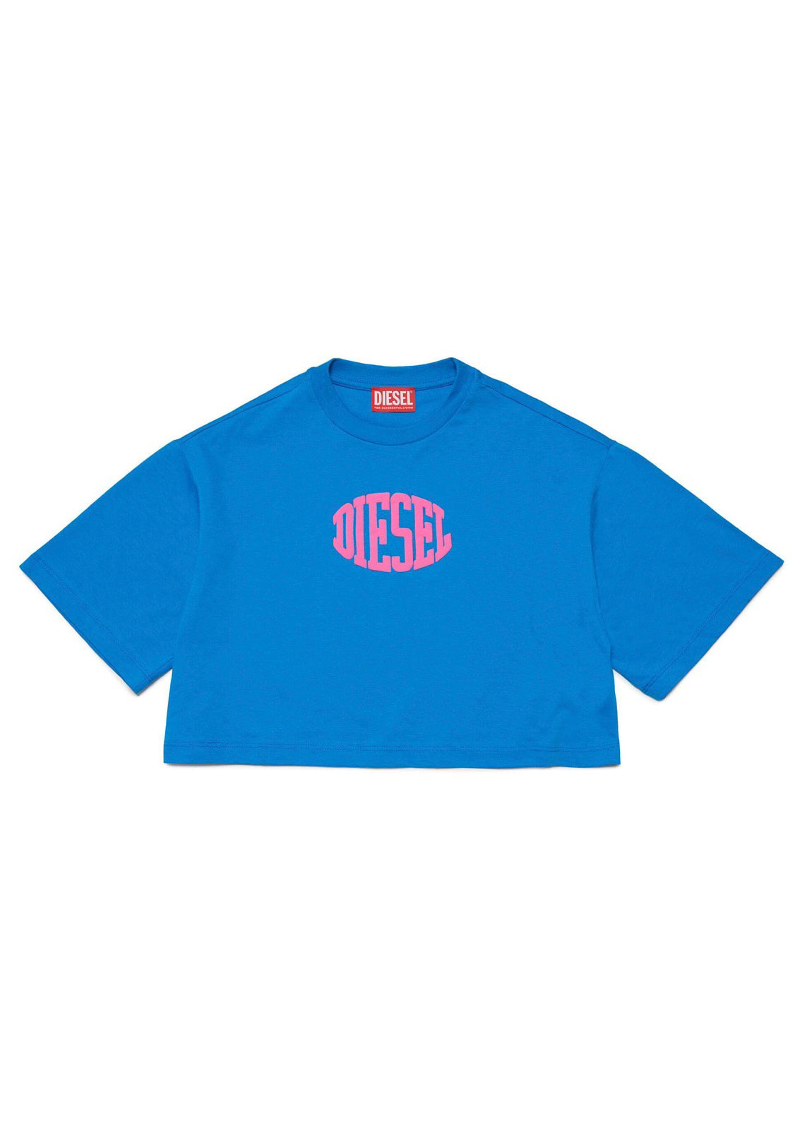 Diesel Kids Blue Cropped T-shirt with Puffy Print
