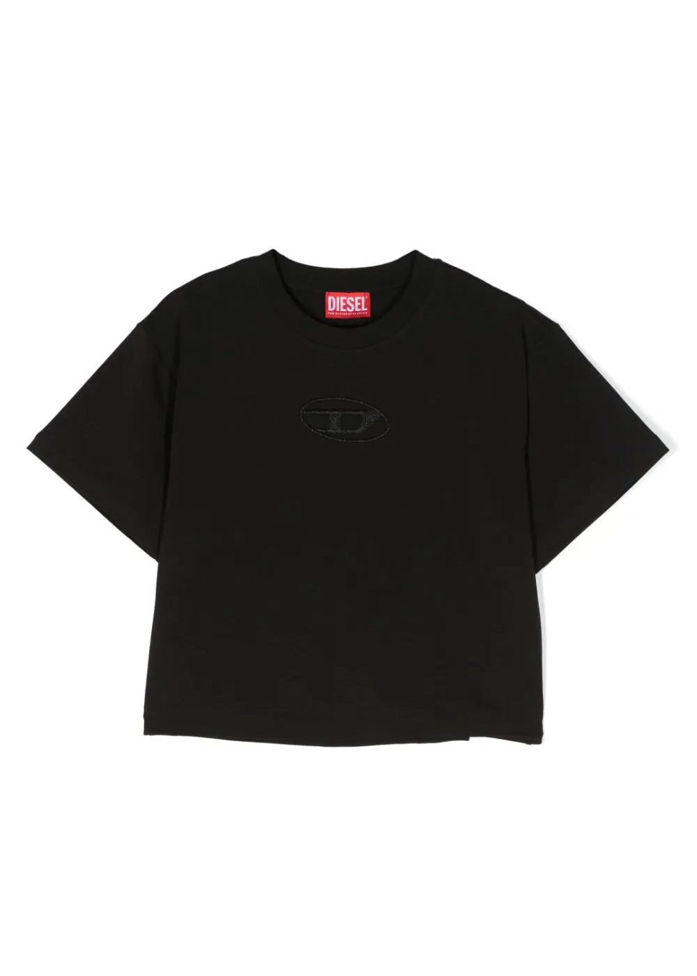 Diesel Kids Black T-Shirt with Embroidered Oval 'D' Logo