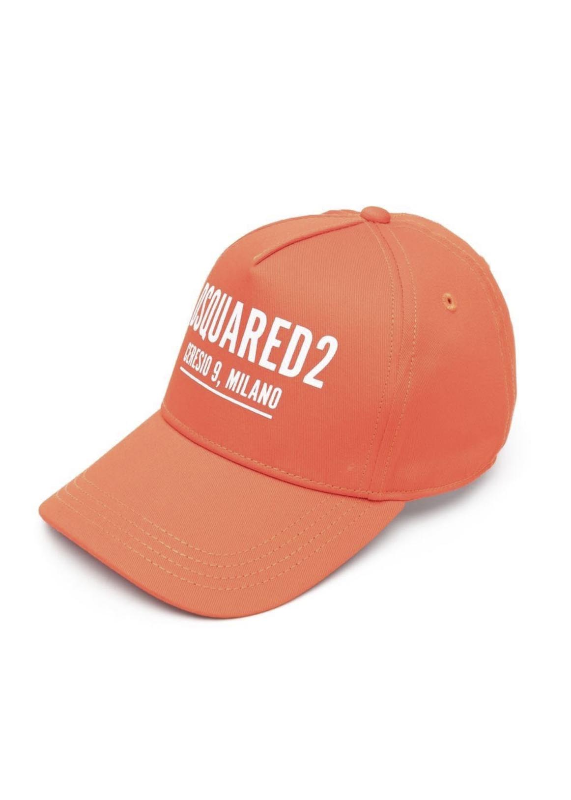 Printed Baseball Cap Logo print on the front, embroidered logo on the back, curved brim and adjustable back buckle band. Material: cotton.Dsquared2 Orange Hat