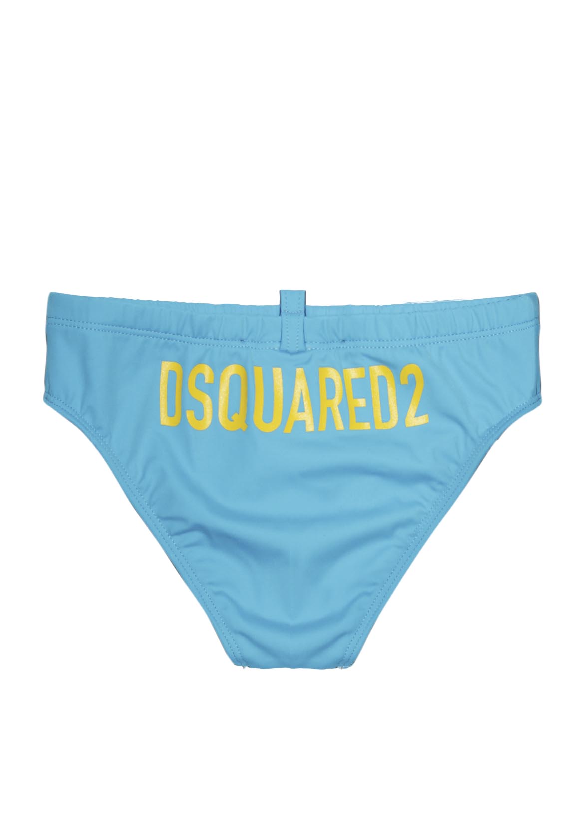 Dsquared2 Blue swimsuit slip with contrasting yellow logo print on the back.