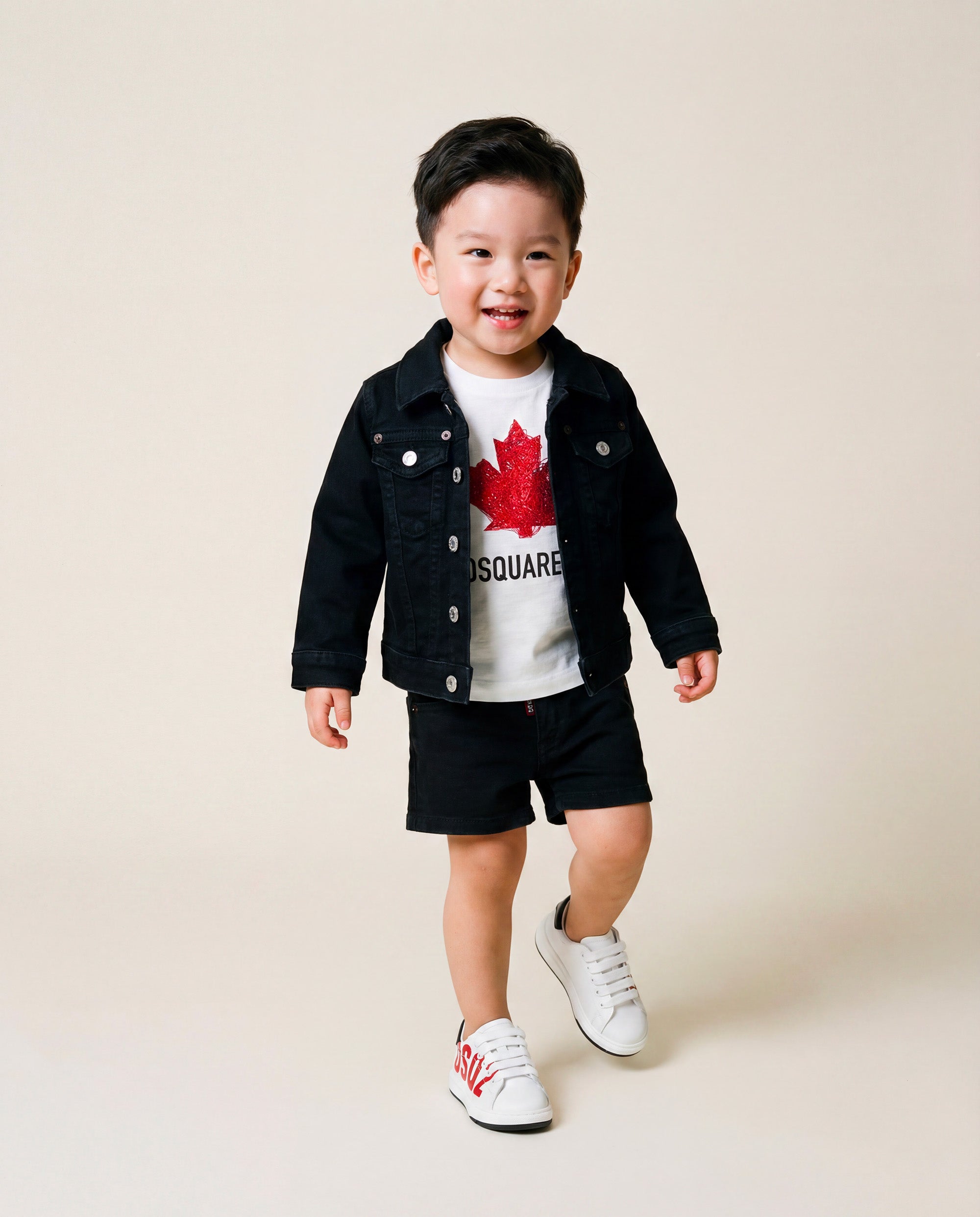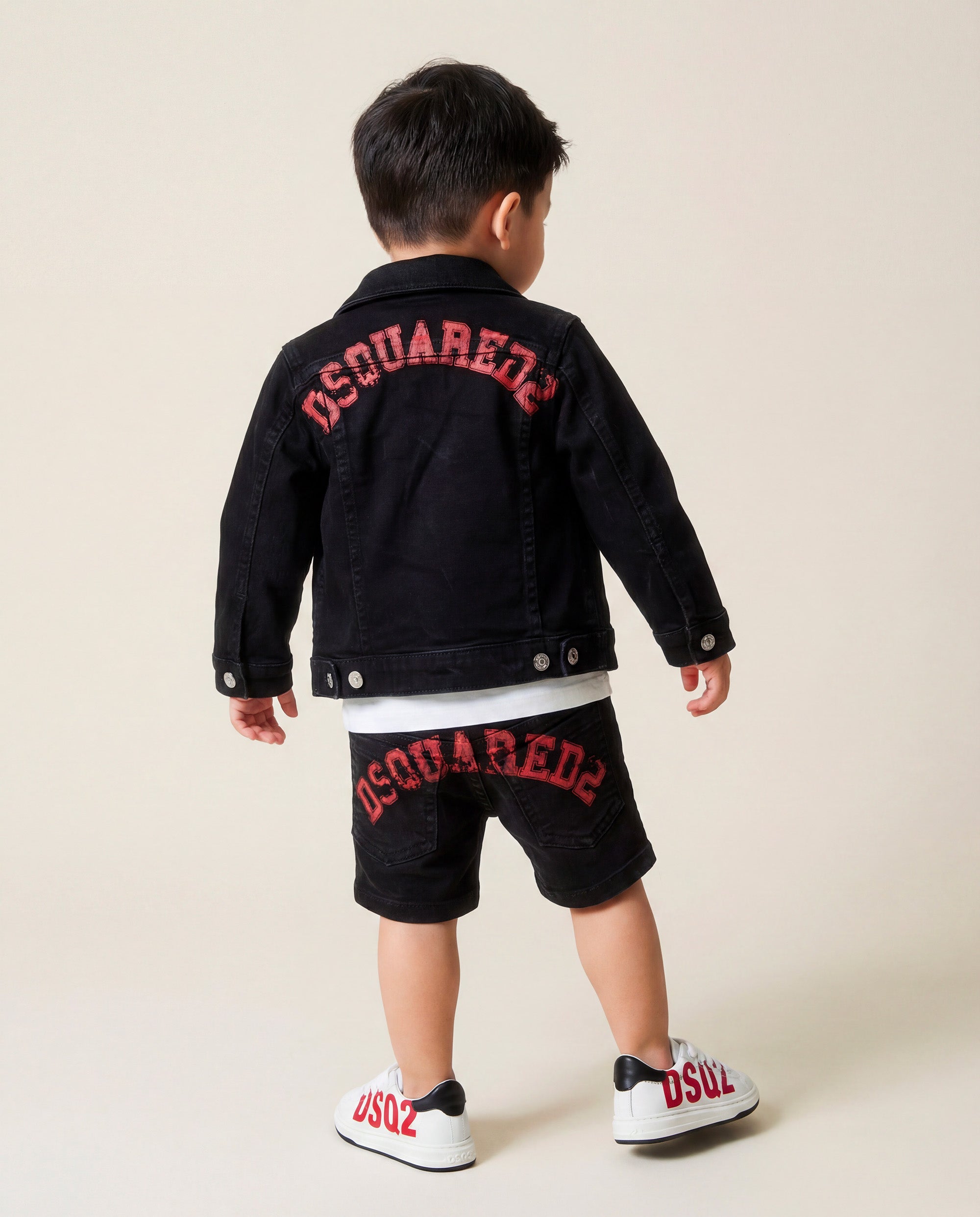 Il modello presenta chiusura coperta, iconica etichetta Dsquared2 rossa sul davanti e stampa logo sul retro che firma il capo con carattere deciso. Perfetti per il tempo libero, uniscono praticità e identità strong in un formato baby.
