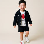 Dsquared2 Kids Bermuda in Denim Nero con Maxi Stampa Logo Retro per Neonati