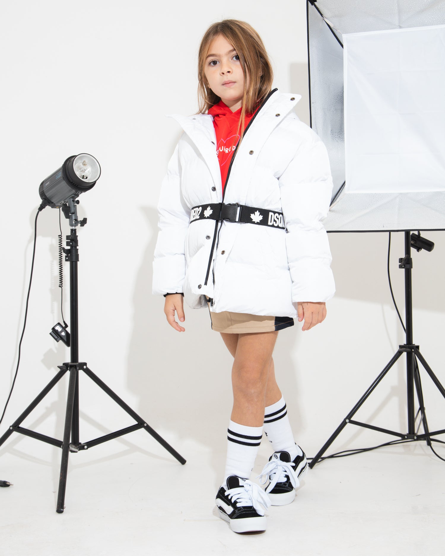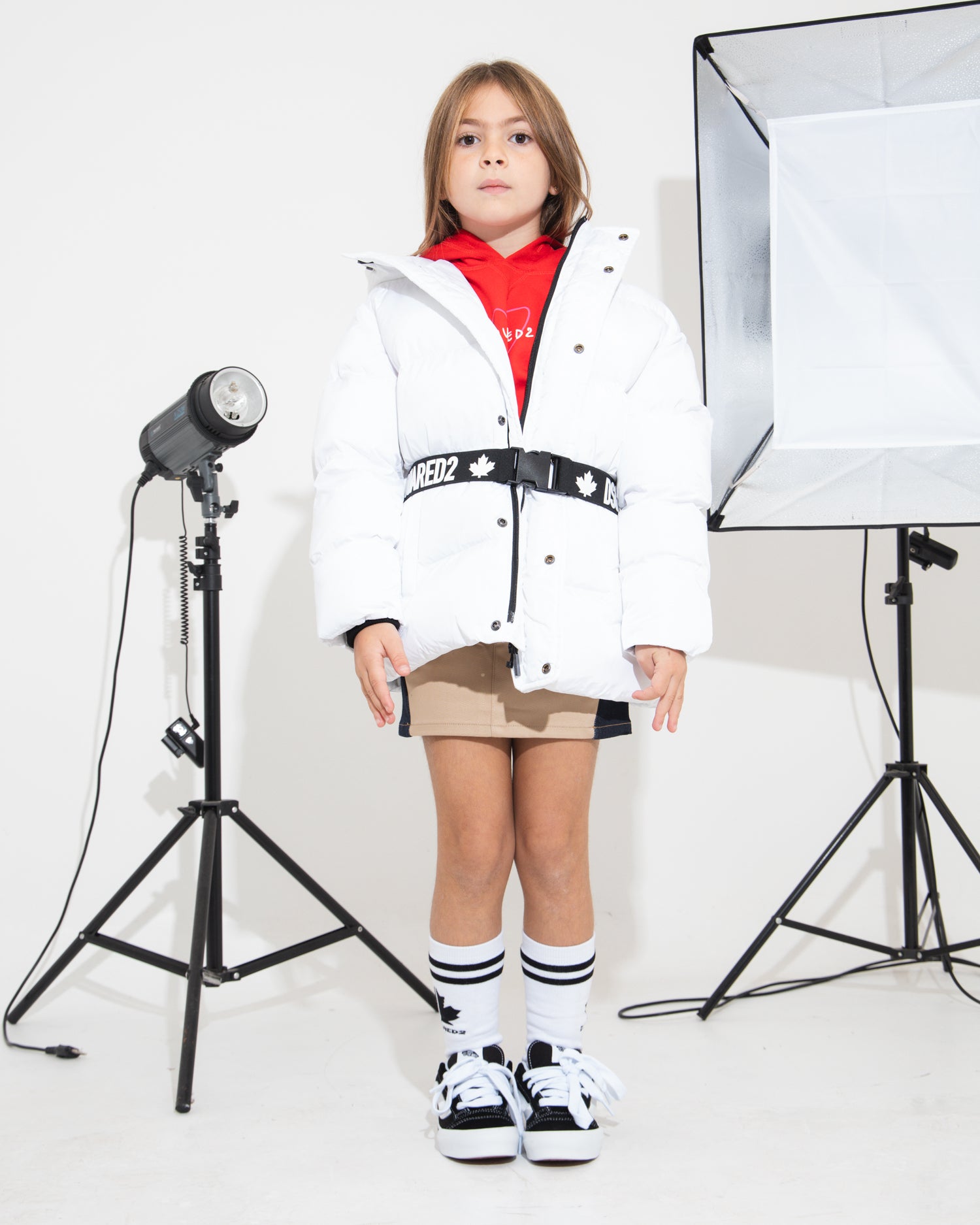 Discover the White Dsquared2 Kids quilted jacket, an essential piece of clothing for little ones who want to face the winter in style. Crafted from shiny nylon, it features classic striped quilting and faux down padding to ensure maximum comfort and warmth. Featuring a fixed hood, hidden zip fastening and front zip pockets, it is perfect for everyday activities. The contrasting Dsquared2 logo on the black belt adds a distinctive and fashionable touch. Ideal for completing casual outfits and less formal occasions. Discover more on Florence Kids.