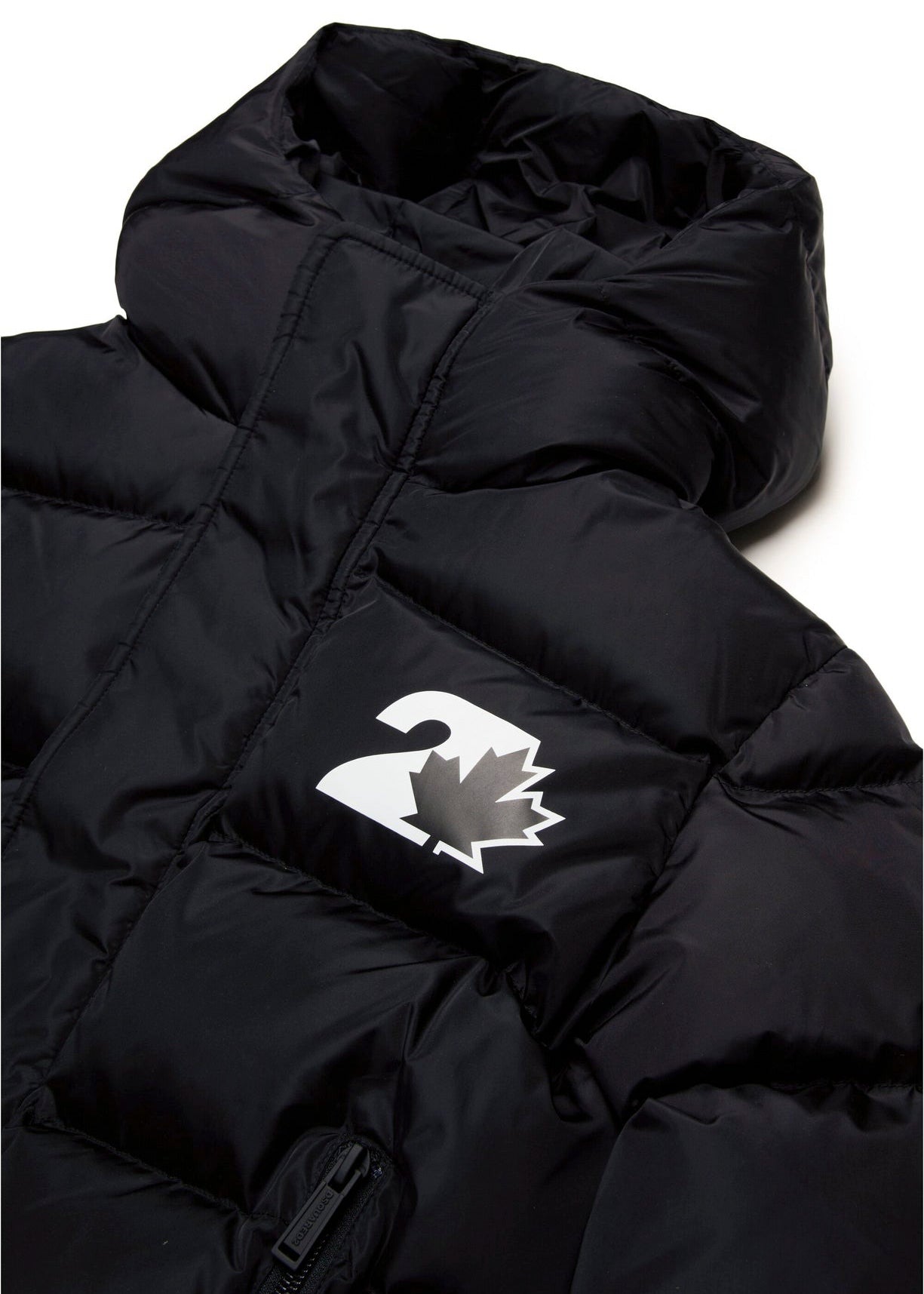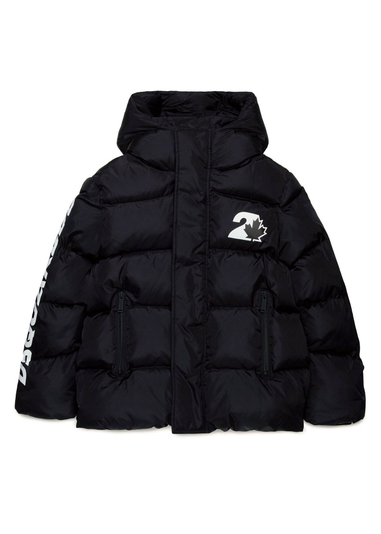 Dsquared2 Kids Black Quilted Jacket with Leaf Logo for Children