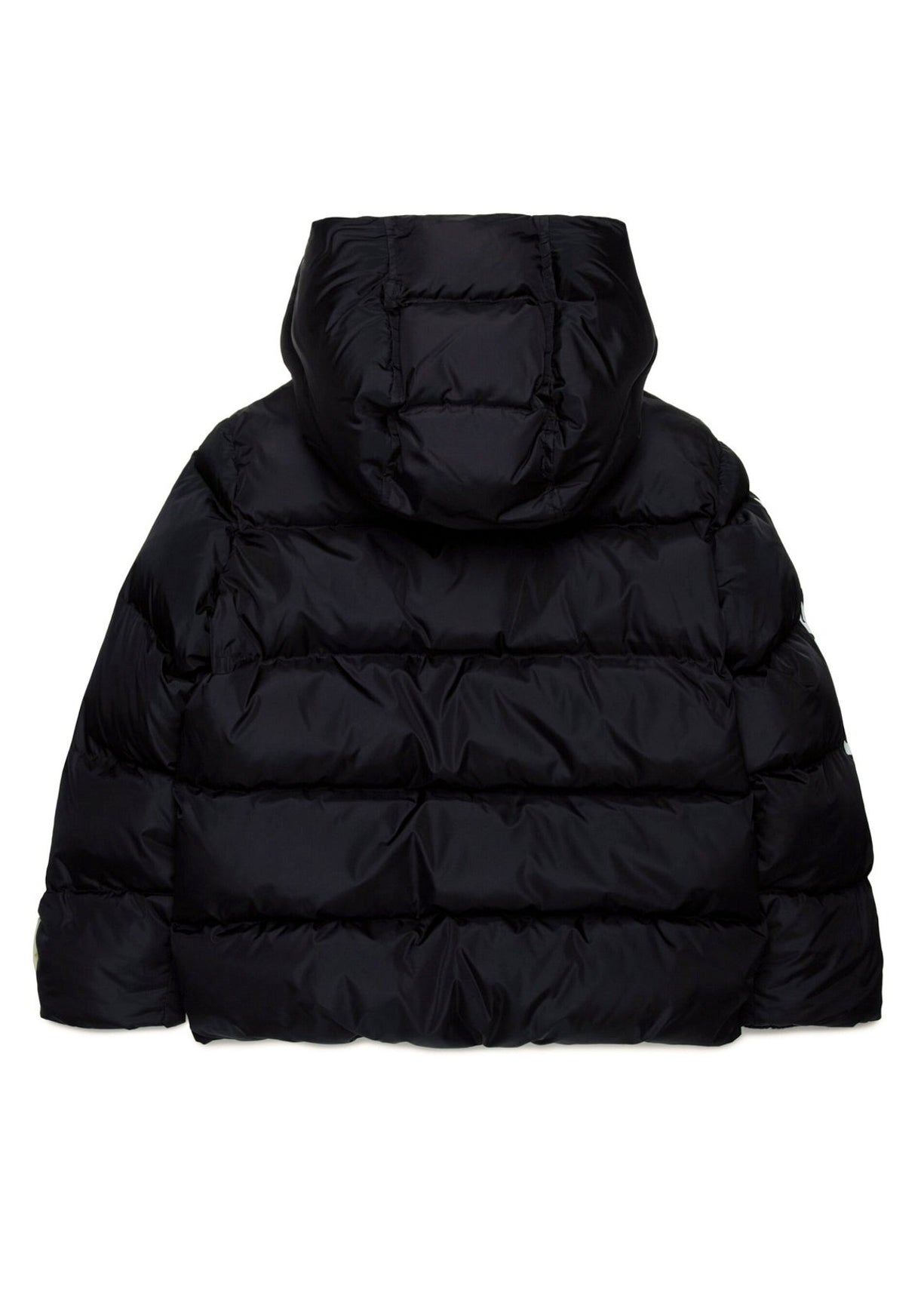 Discover the black quilted jacket by Dsquared2 Kids, an essential piece of clothing for little ones who want to face the winter in style. Crafted from shiny nylon, it features classic striped quilting and faux down padding to ensure maximum comfort and warmth. Featuring a fixed hood, hidden zip fastening and front zip pockets, it is perfect for everyday activities. The contrasting Dsquared2 logo on the sleeve and the urban graphic on the left chest add a distinctive and fashionable touch. Ideal for completing casual outfits and for less formal occasions. Discover more on Florence Kids.